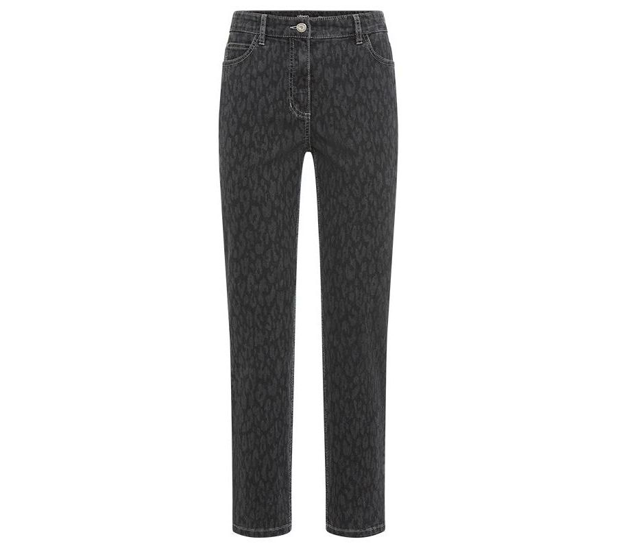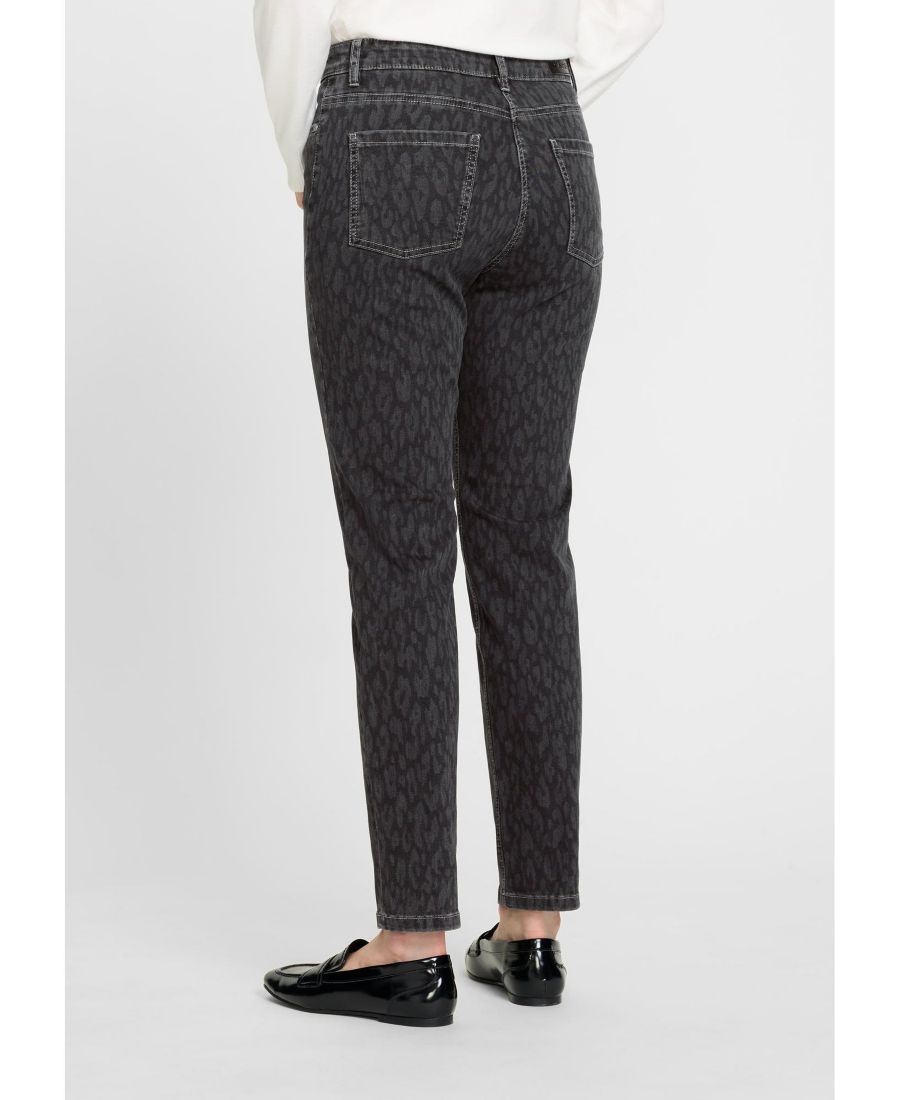 Популярные джинсы модели Mona Fit получили новое оформление: теперь они украшены едва заметным леопардовым принтом по всей поверхности, что придает им стильный вид.