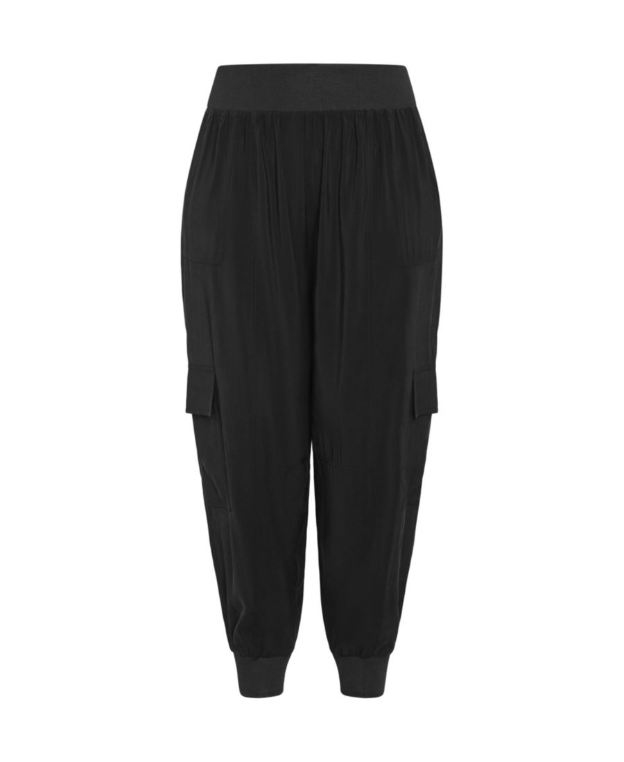 Функциональные боковые и задние карманы. Брюки прямого кроя. Длинный нижний край с ребристыми манжетами. Без подкладки. Сочетайте с футболкой с принтом для завершенного образа.
