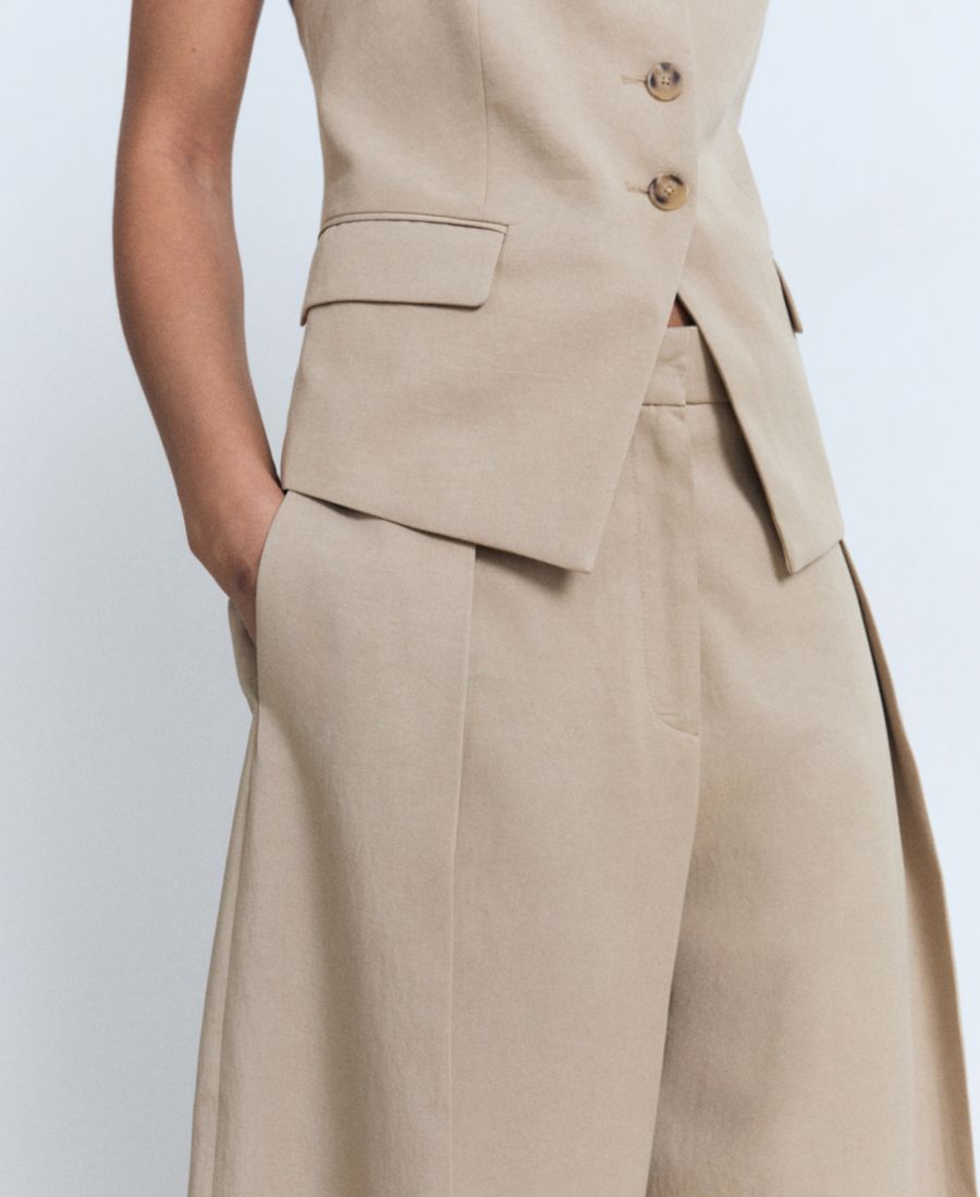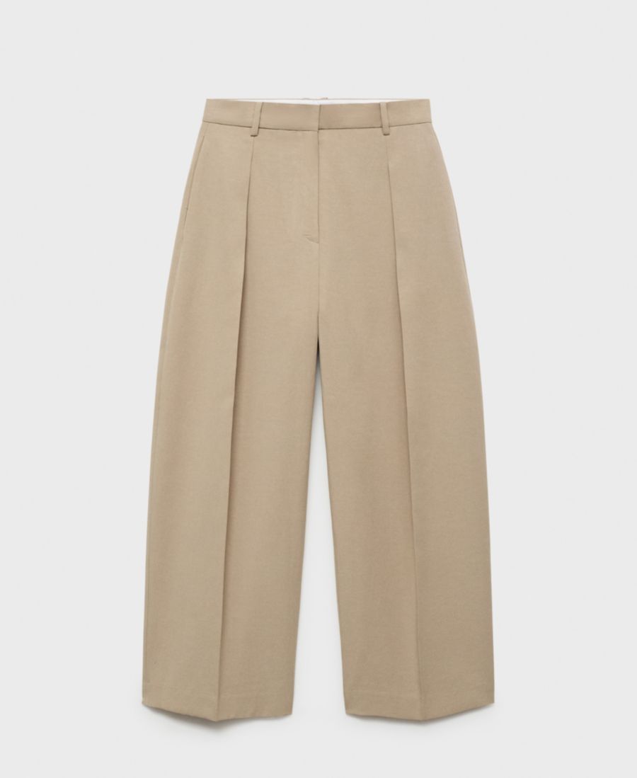 В брюках-плиссе Balloon от Mango объем сочетается с изысканными деталями. Эти брюки средней посадки по талии имеют объемный дизайн с вытачками.