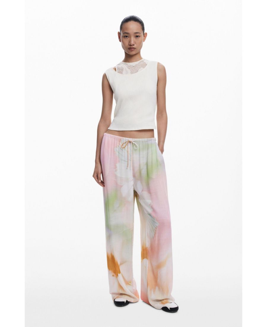 Длинные брюки свободного кроя, с боковыми карманами, эластичным поясом и цветочным принтом в стиле акварели.