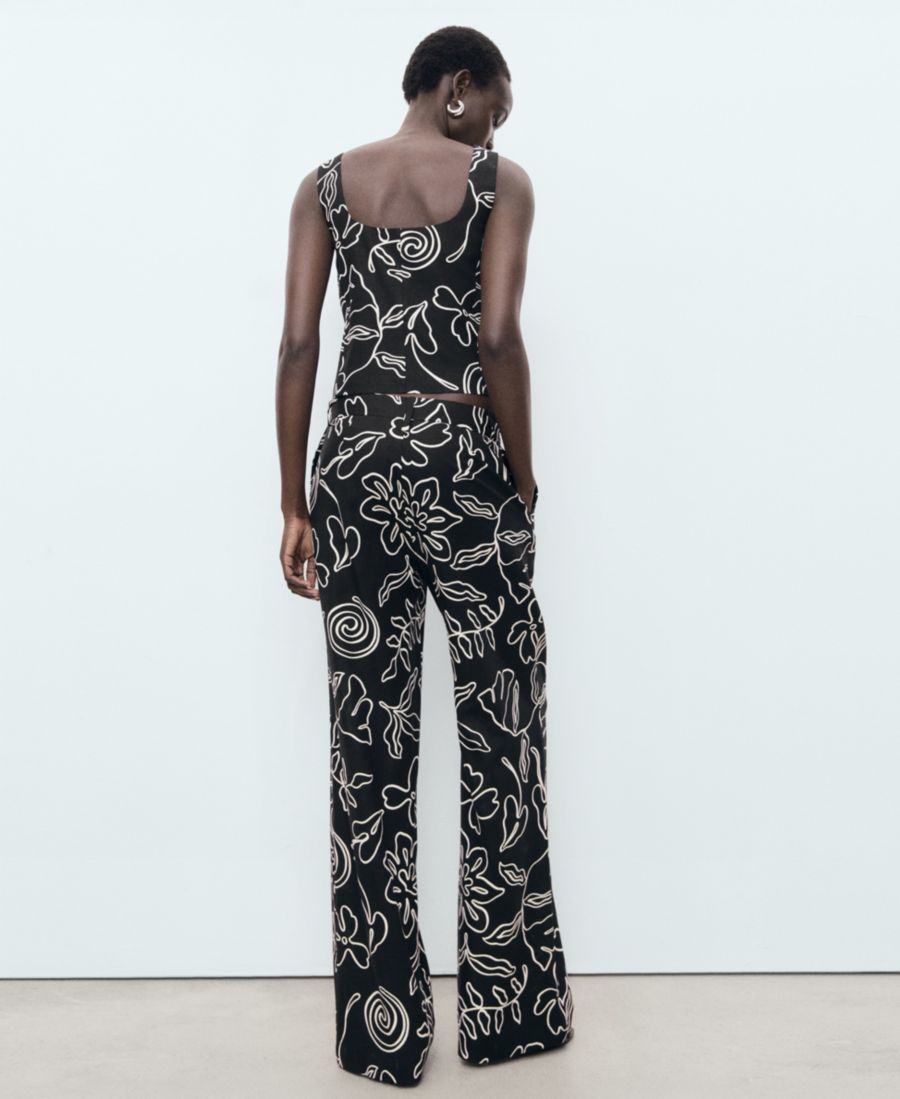В прямых брюках с цветочным принтом от Mango принт сочетается с точностью.