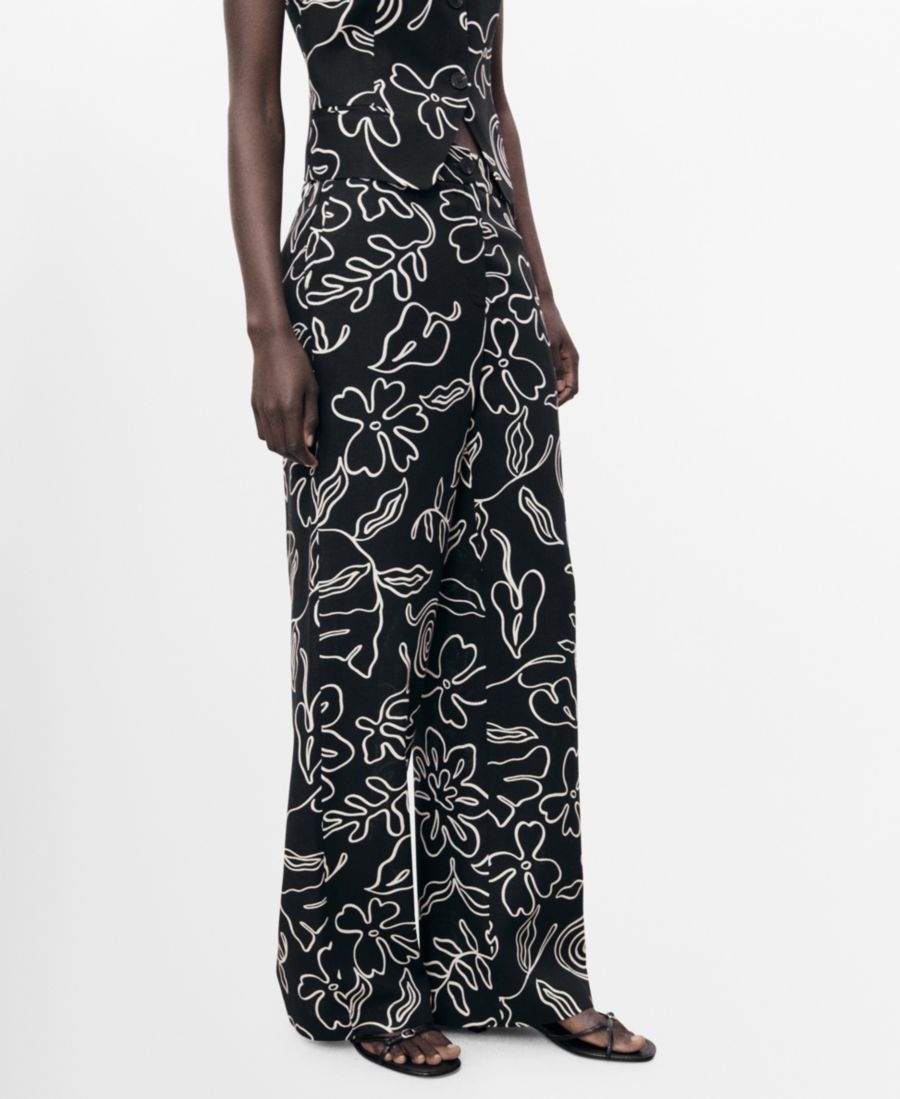 Женские прямые брюки с цветочным принтом MANGO, Black 7 373₽