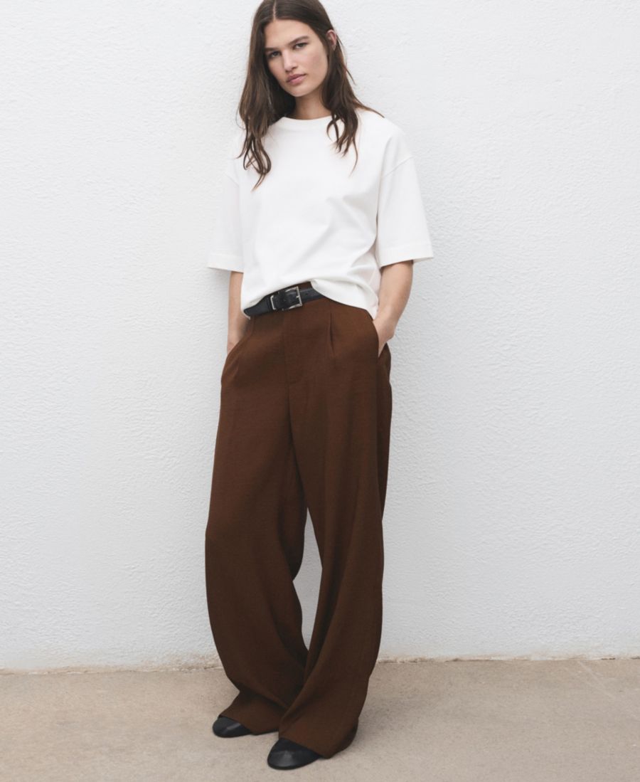 Универсальный крой отличает прямые плиссированные брюки от Mango.