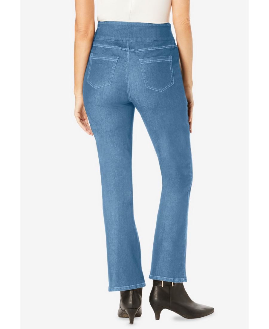 Эти удобные джинсы-клеш из эластичного денима имеют плоский эластичный пояс без зазоров. Джинсы обеспечивают гладкий вид под любой вашей любимой одеждой, включая топы и туники. Наслаждайтесь классическим видом отличных джинсов, но при этом чувствуйте себя комфортно благодаря эластичности по всей поверхности. Изготовлены с плоским эластичным поясом, который гладко облегает талию, идеально подходит для ношения в течение всего дня. Имитация застежки-молнии обеспечивает гладкий вид под вашей любимой одеждой, подчеркивая ваш силуэт. Плотно прилегают к телу и сидят прямо на бедрах. Наслаждайтесь свободой движений благодаря мягкому эластичному дениму, который адаптируется к вашему телу, обеспечивая при этом расслабленную, но надежную посадку. Практичные и удобные плоские передние и задние карманы обеспечивают достаточно места для хранения ваших вещей.