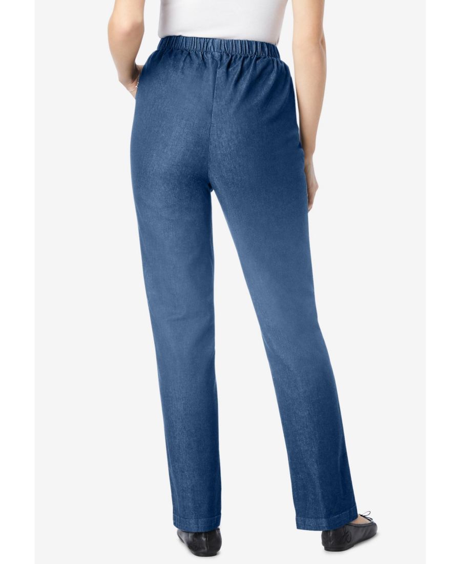 Женские джинсы Within Straight Leg Fineline Pull-On Stretch Denim Woman Within, Medium stonewash