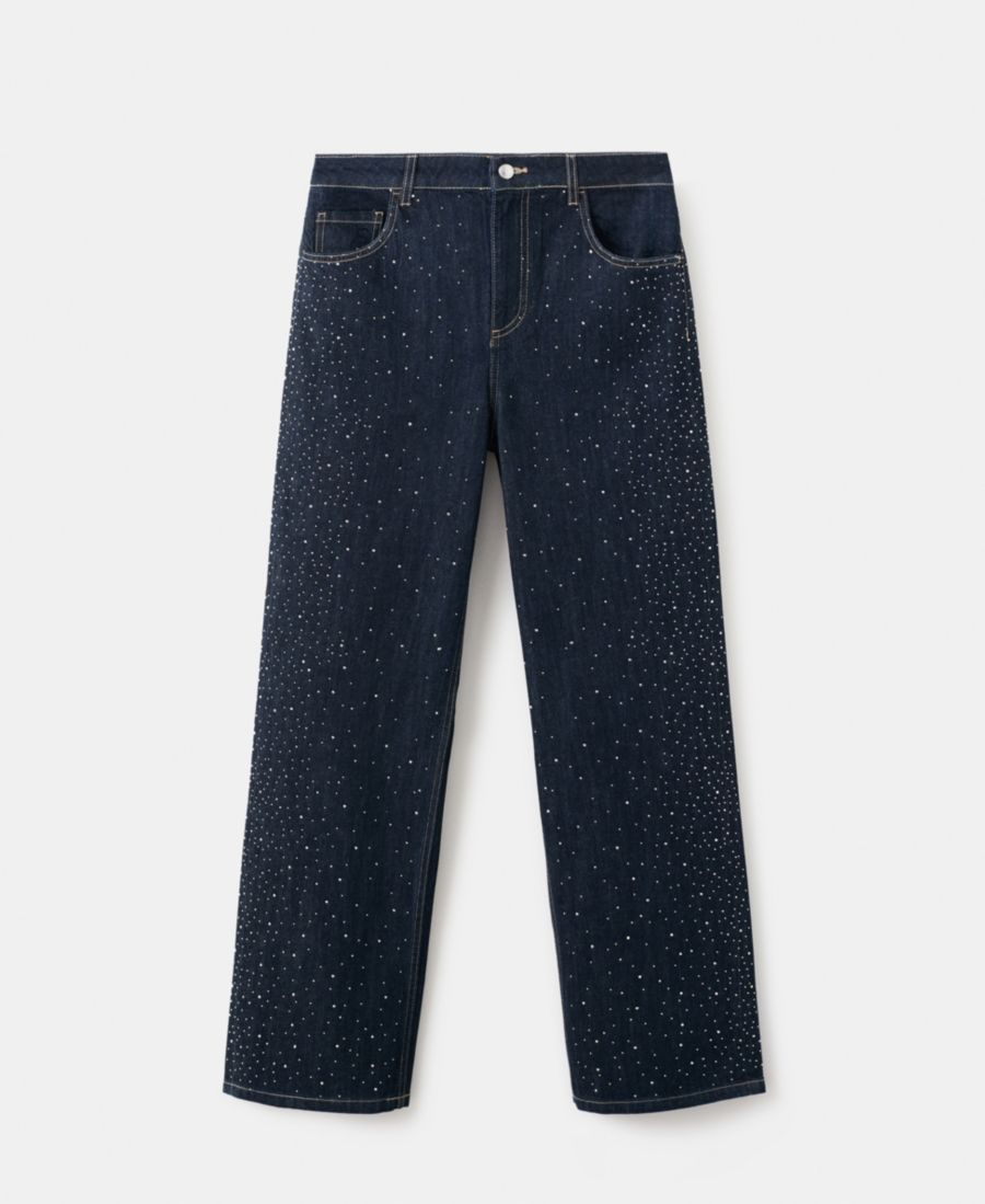 Женские прямые джинсы с отделкой стразами MANGO, Open Blue