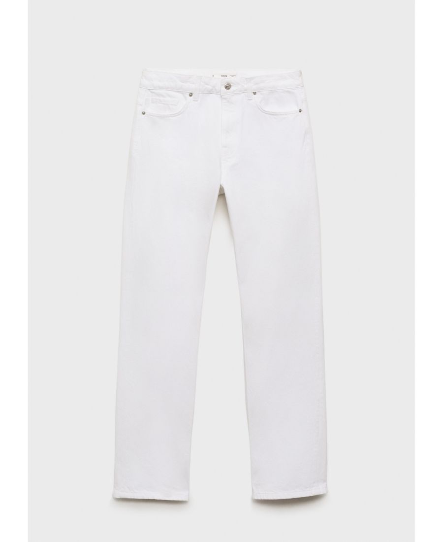 Подчеркните свой стиль с помощью прямых джинсов средней посадки от Mango. Изготовленные из хлопчатобумажной ткани, имитирующей деним, эти джинсы со средней посадкой имеют длинный, прямой и укороченный крой, петли для ремня, пять карманов и застежку-молнию с пуговицей спереди.