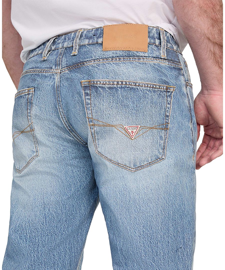 Эти светлые джинсы унисекс от GUESS, созданные для зауженного силуэта и прямого кроя, воплощают в себе суть идеально поношенного денима.