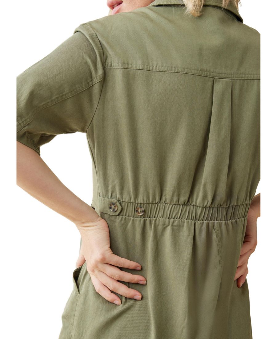 Мягкий, но при этом хорошо сидящий по фигуре, этот универсальный комбинезон имеет удобную для кормления грудью переднюю молнию и длину до середины бедра, поэтому он не сползает. Представьте его как укороченную версию нашего бестселлера - комбинезона One Zip Wonder Jumpsuit - со многими замечательными деталями, включая регулировку на пуговицах для разных этапов беременности.