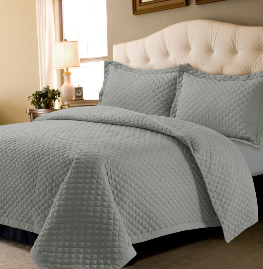 Комплект постельного белья Brisbane Microfiber Solid Oversized Quilt Set, Twin Tribeca Living, Silver Grey