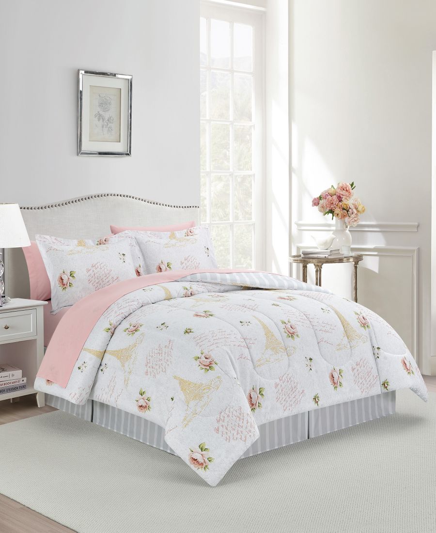 Размеры Full: одеяло 76"x86", две стандартные наволочки 20"x26". Размеры кровати Queen: одеяло 88x88 дюймов, две стандартные наволочки 20x26 дюймов, юбка для кровати 60x85 дюймов + 12,25 дюймов, две стандартные наволочки 20x30 дюймов.
