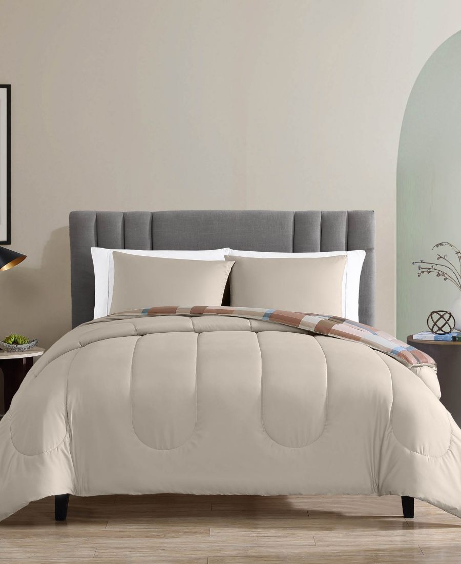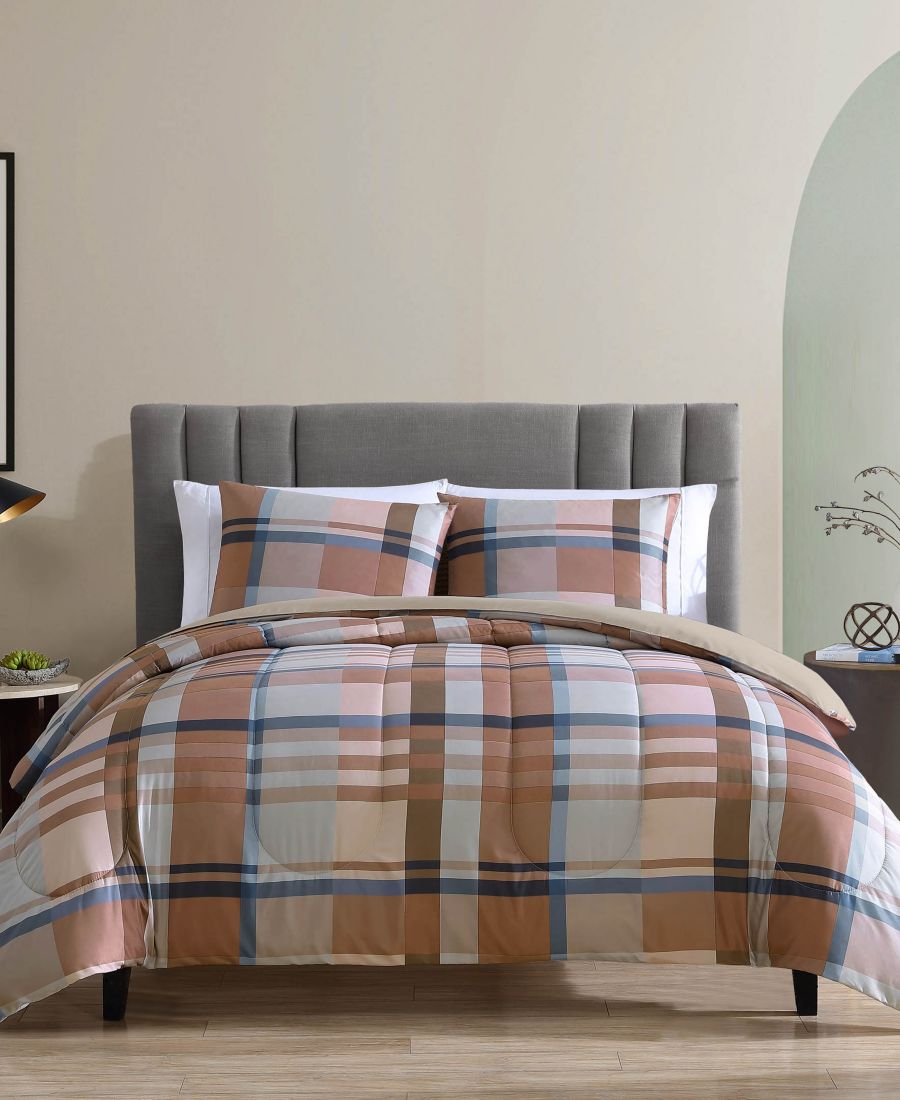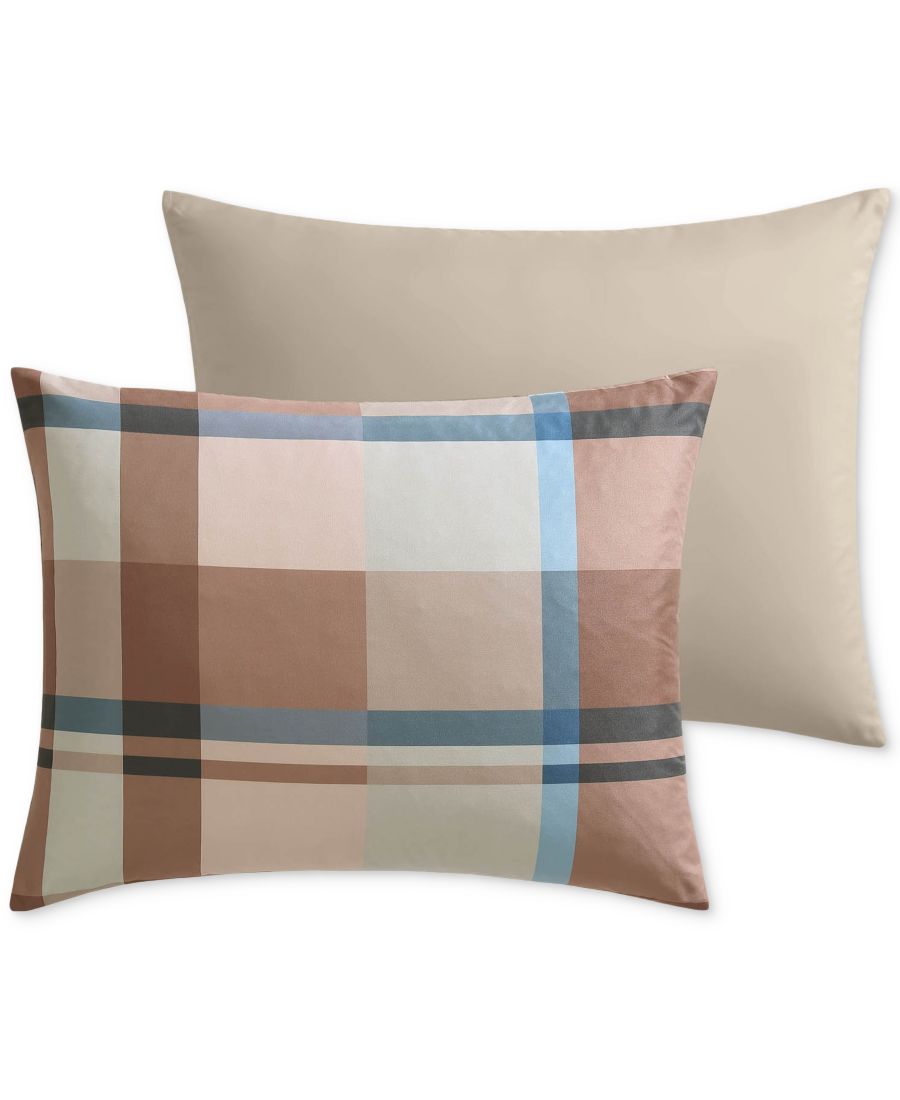 Яркие акценты, переплетающиеся с земляными тонами, придают клетчатому узору комплекта постельного белья Harper от Macy's свежий вид.