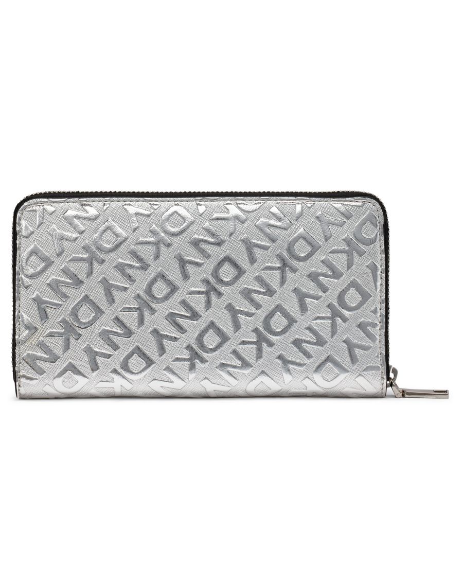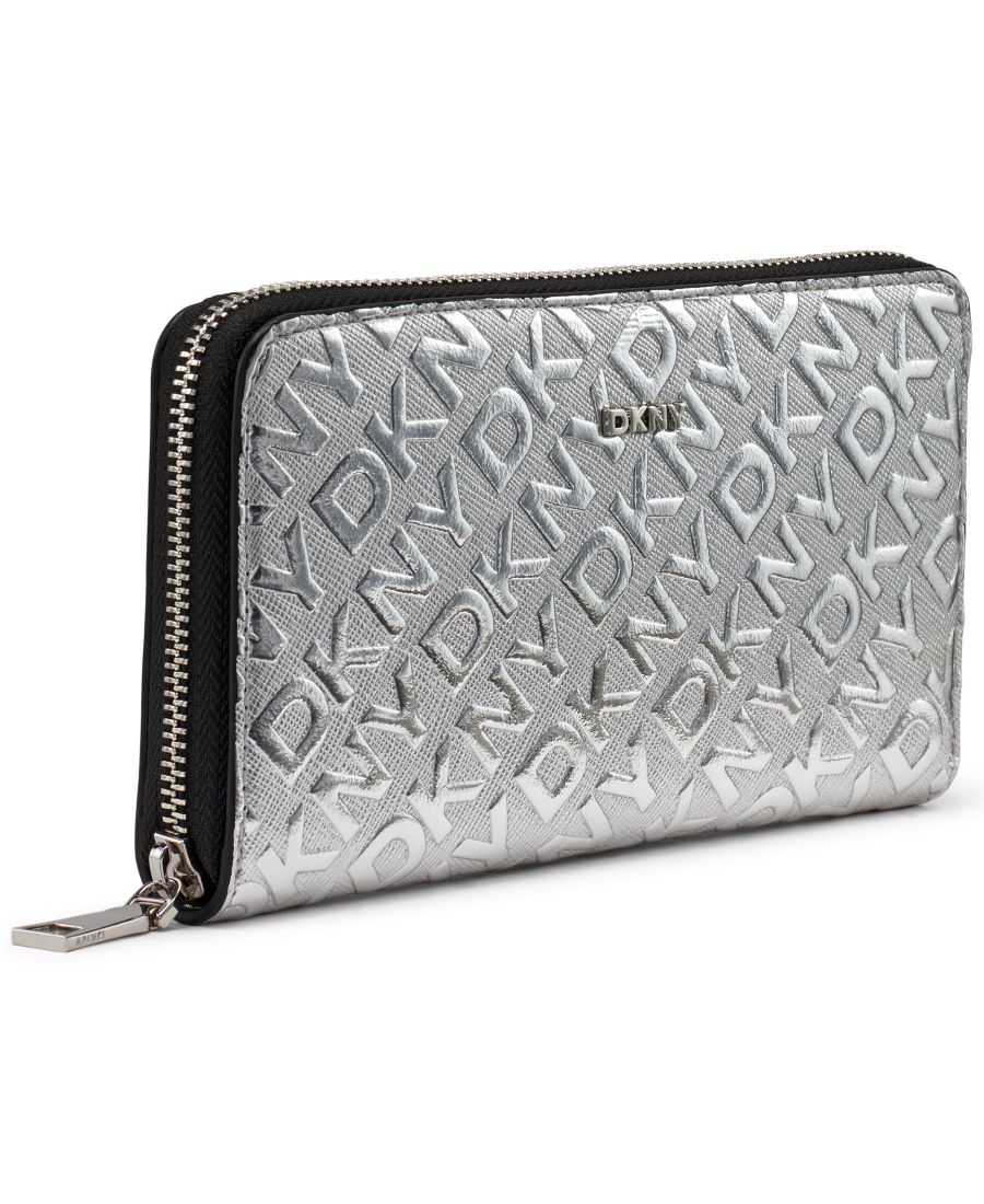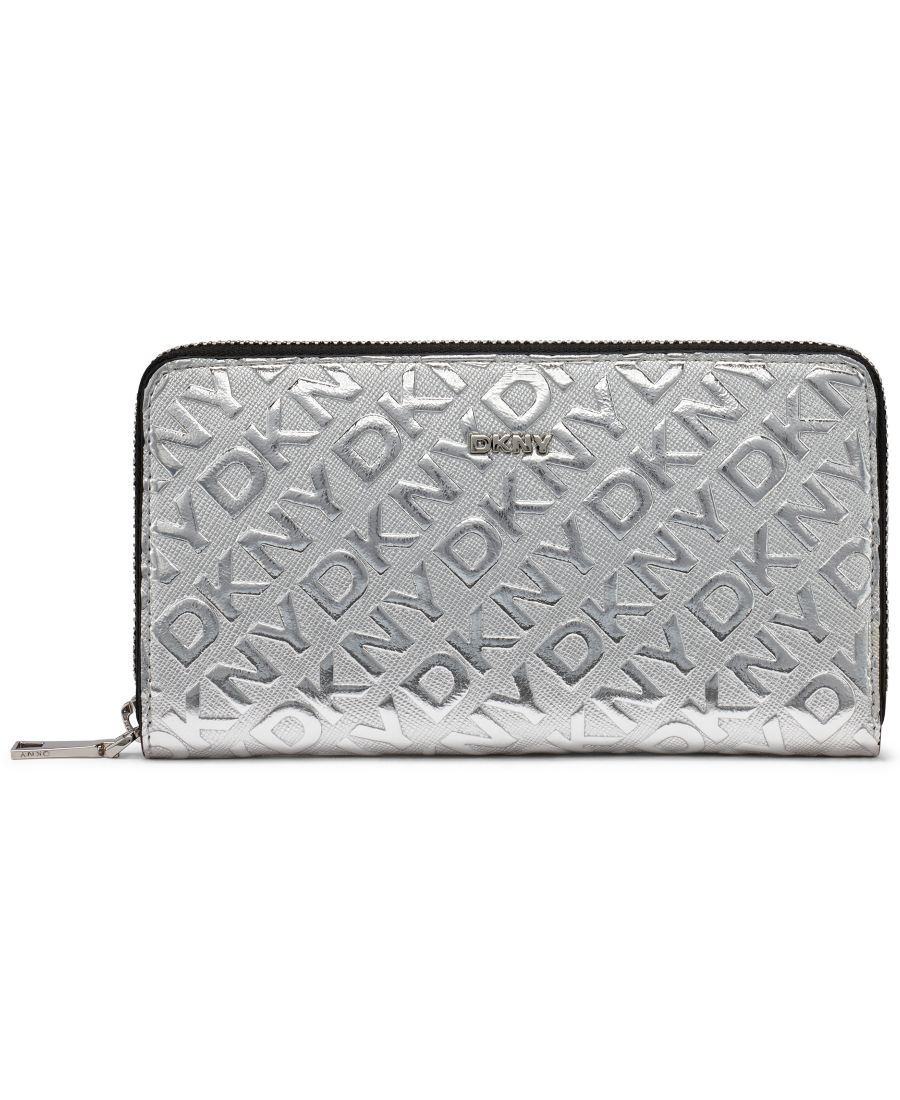 С этим большим кошельком DKNY Ashlyn, украшенным элегантной серебристой фурнитурой, вы легко сможете поддерживать порядок. Внутри вы найдете пять накладных карманов спереди и сзади. Также имеется центральное отделение на молнии, удобное для хранения карт, наличных денег и монет.
