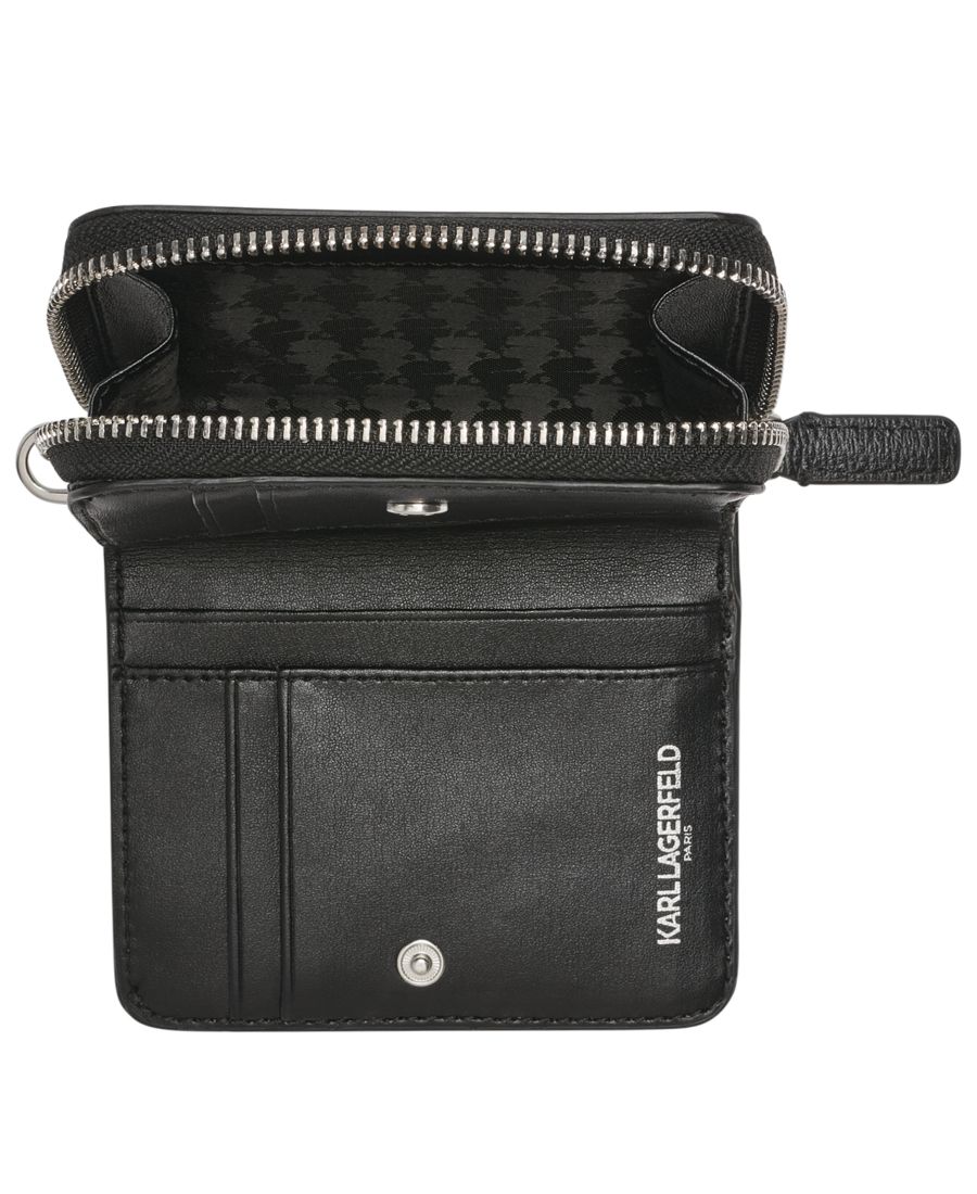 Храните наличные деньги в порядке и под рукой с помощью этой сумки KARL LAGERFELD PARIS Jacqueline SLG, которая закрывается на молнию и организует купюры в специальных карманах. Отделение для монет вместит мелочь и обеспечит быстрые операции.