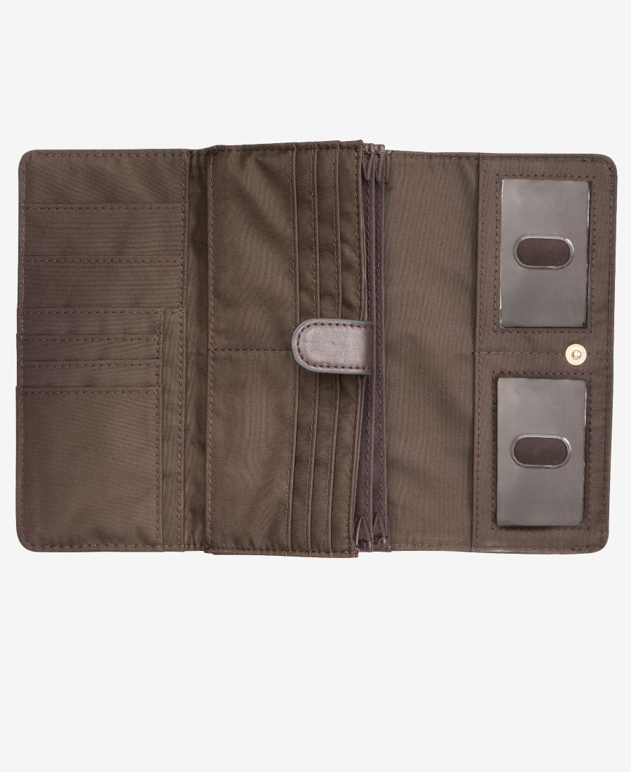 Внешняя фурнитура золотистого цвета, задний карман с рамкой; внутренний накладной карман, окошко для удостоверения личности, отделение для банкнот и 17 слотов для карт. Эксклюзивно от Macy's
