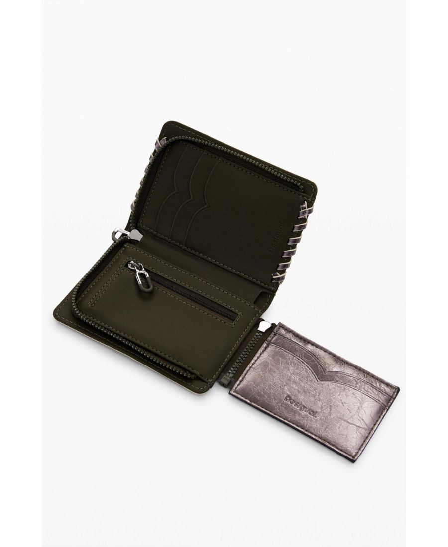 Небольшой кошелек из искусственной кожи с металлизированным покрытием, со съемным отделением для карт и застежкой-молнией.