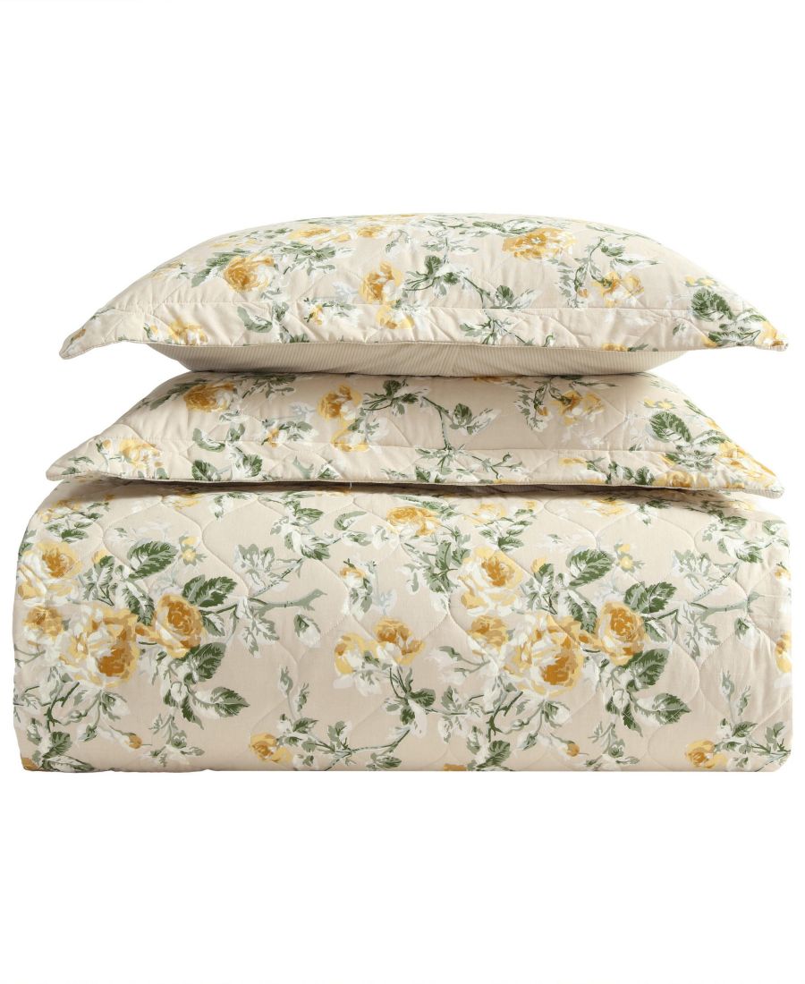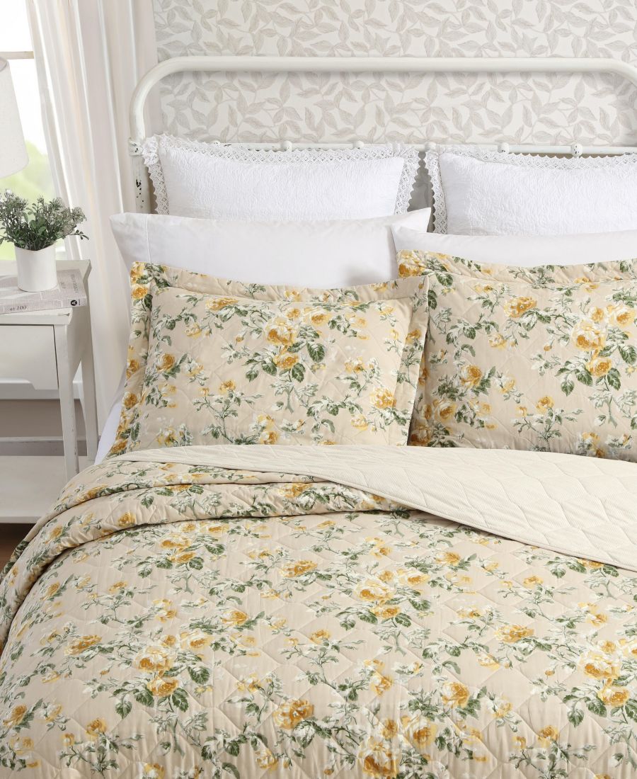 Двустороннее одеяло с рисунком роз, 3 предмета, размер King Laura Ashley, Gold/Beige