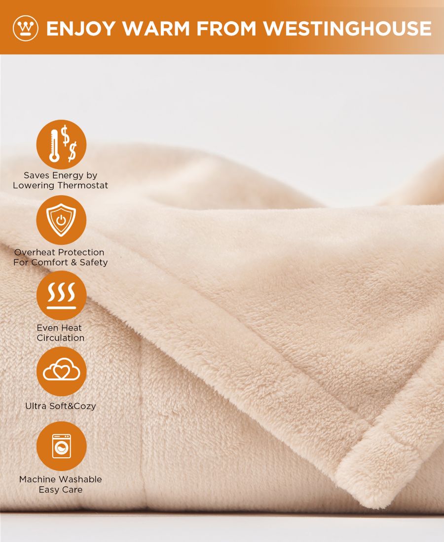 Фланелевый плед с подогревом, 50 x 60 дюймов Westinghouse, Beige