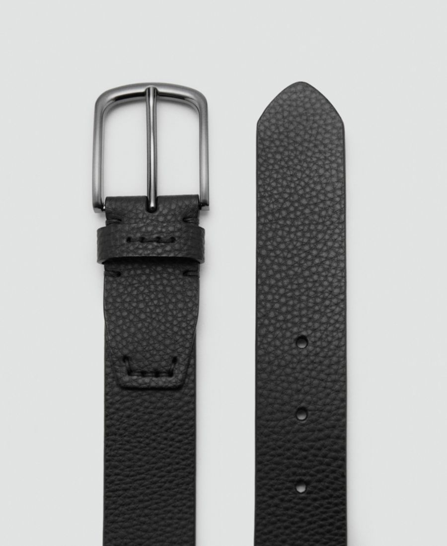 Мужской кожаный ремень с зернистой текстурой MANGO, Black