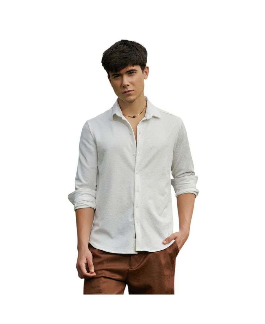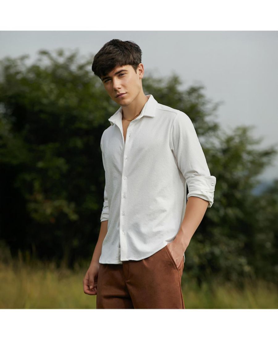 Мужская рубашка с тактильной гофрировкой Campus Sutra, White
