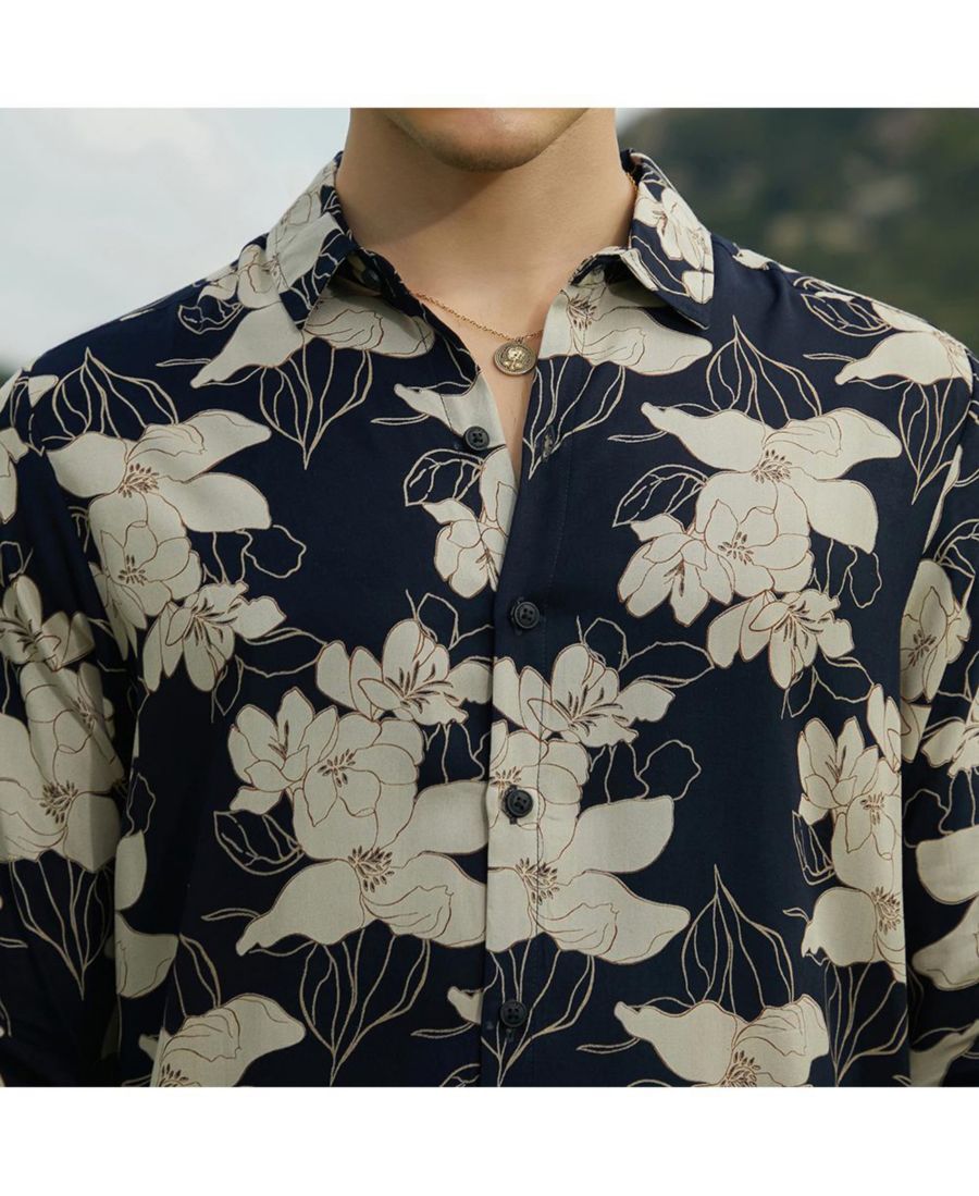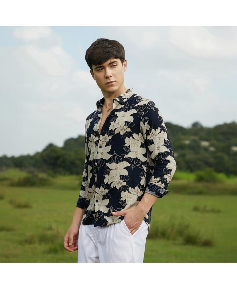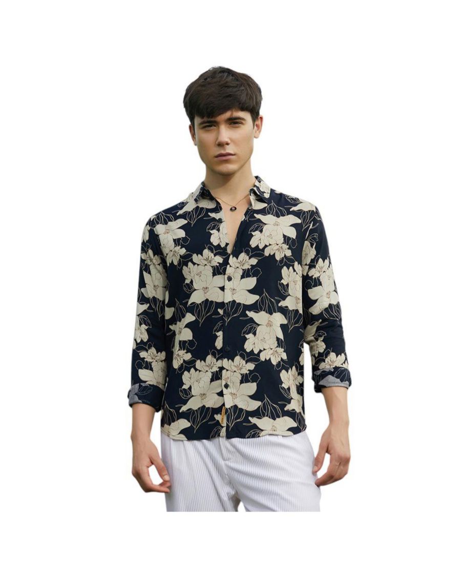 Мужская рубашка с растительным принтом Campus Sutra, Black