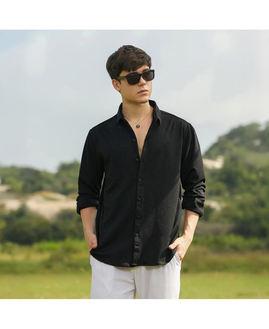 Мужская рубашка с тактильной гофрировкой Campus Sutra, Black