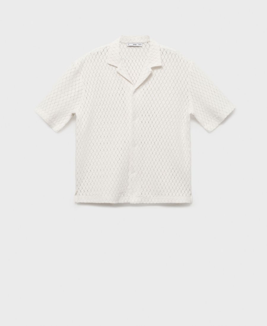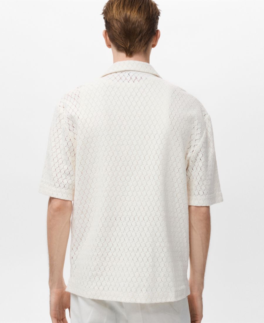 Мужская хлопковая рубашка с ажурным декором MANGO, Off White