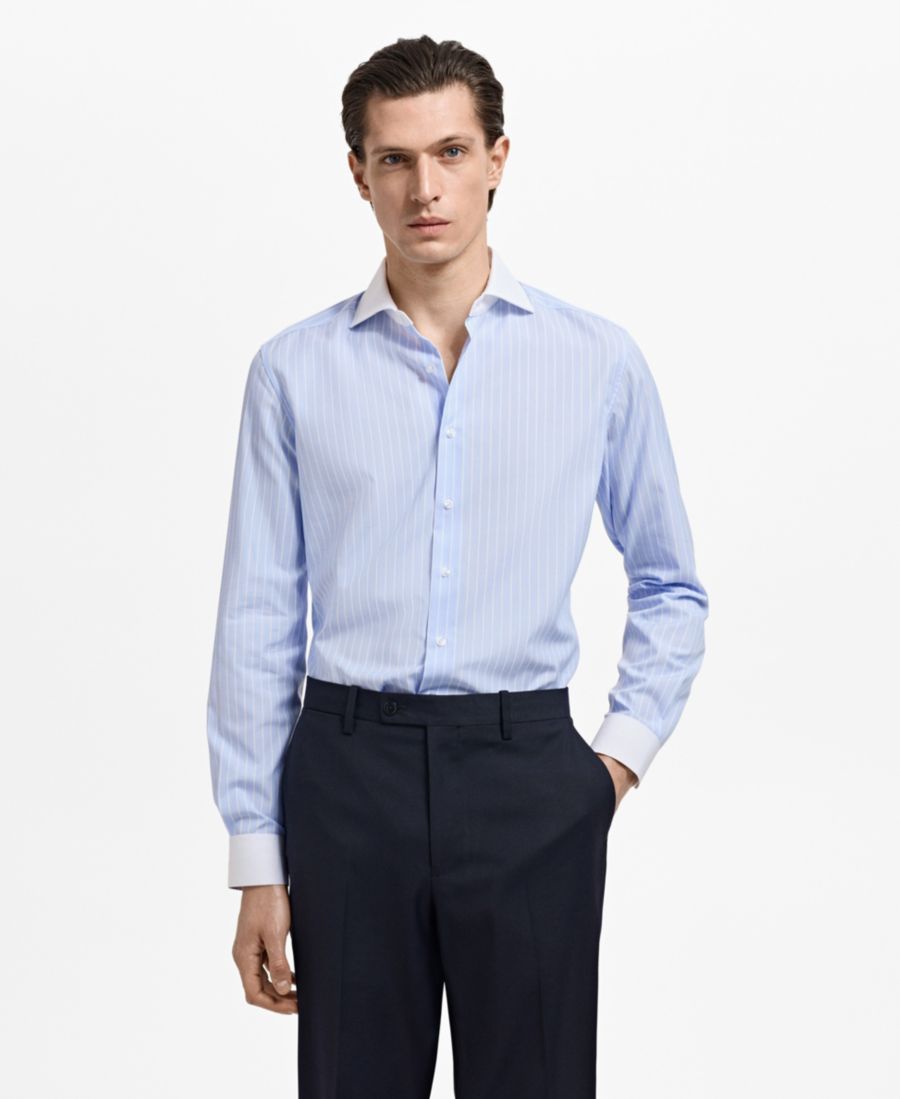 Мужская рубашка в полоску приталенного кроя MANGO, Sky Blue 8 026₽
