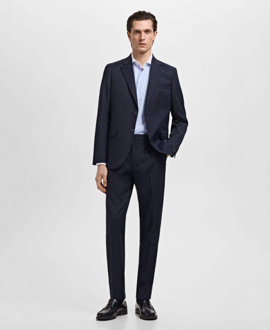 Четкие линии и ненавязчивый узор определяют дизайн рубашки для костюма в полоску от Mango. Изготовленная из хлопчатобумажной ткани, эта рубашка приталенного кроя имеет полосатый принт, отложной воротник, застежку на пуговицы спереди и длинные рукава с манжетами на пуговицах.