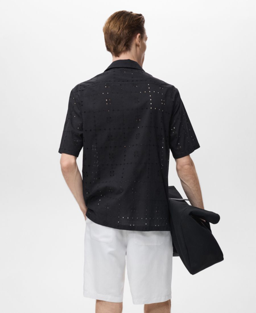 Мужская рубашка с вышитыми перфорированными деталями MANGO, Black