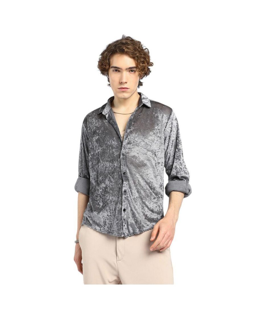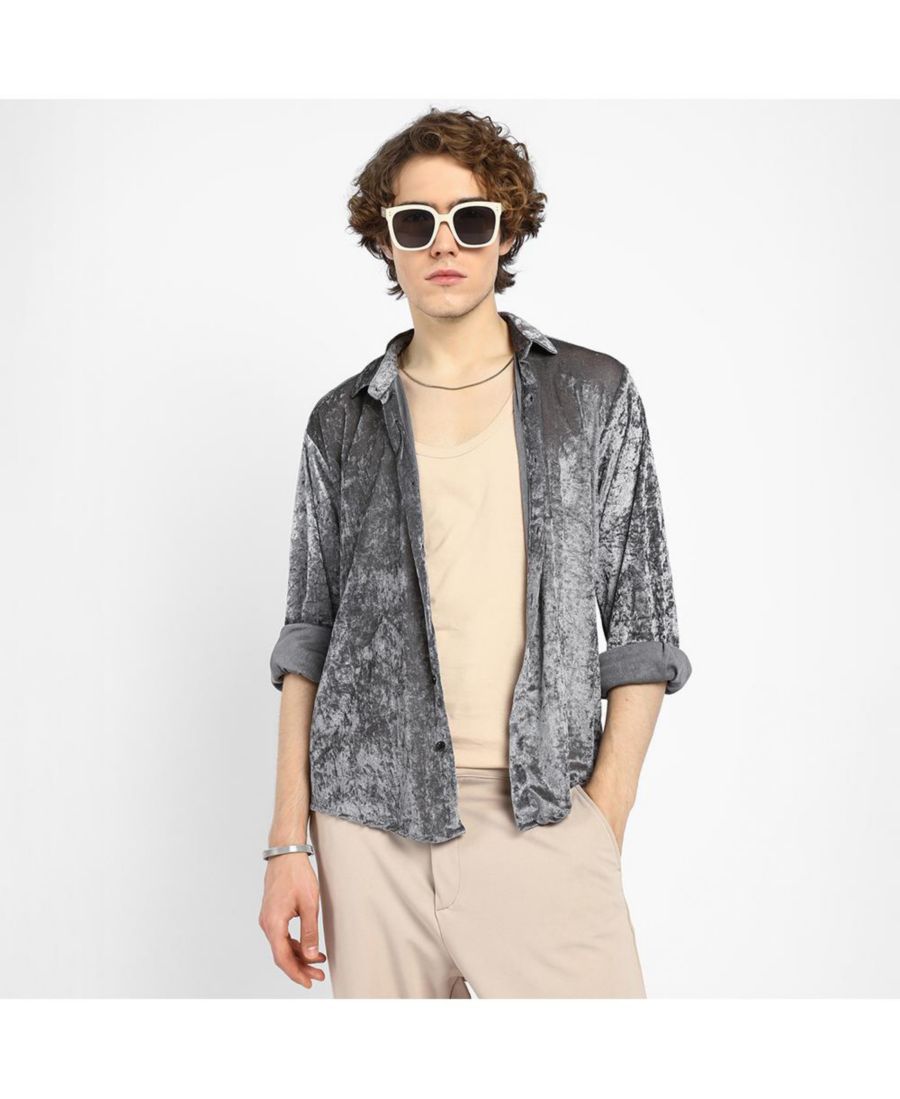 Мужская однотонная бархатная рубашка Campus Sutra, Grey