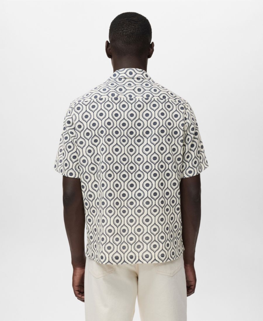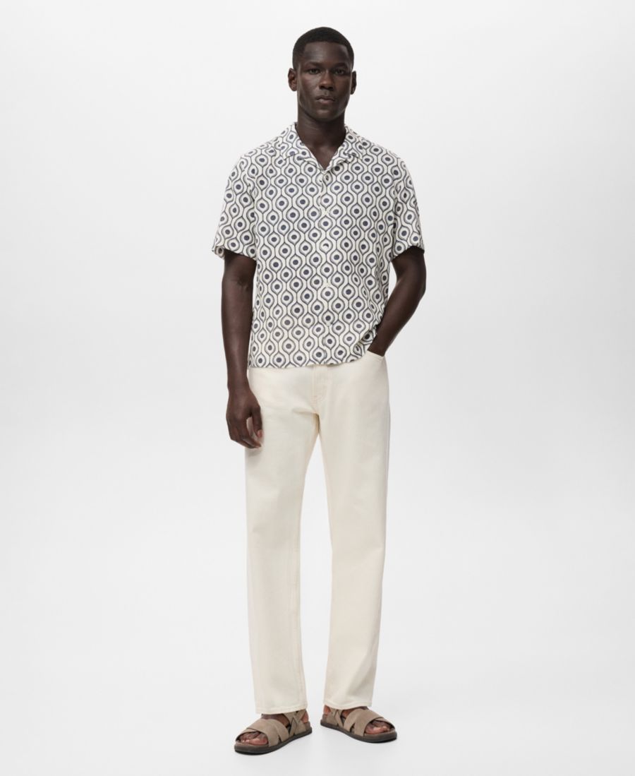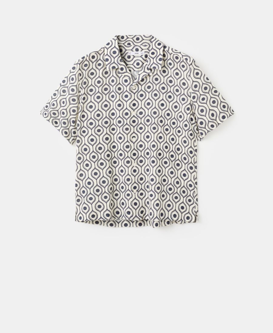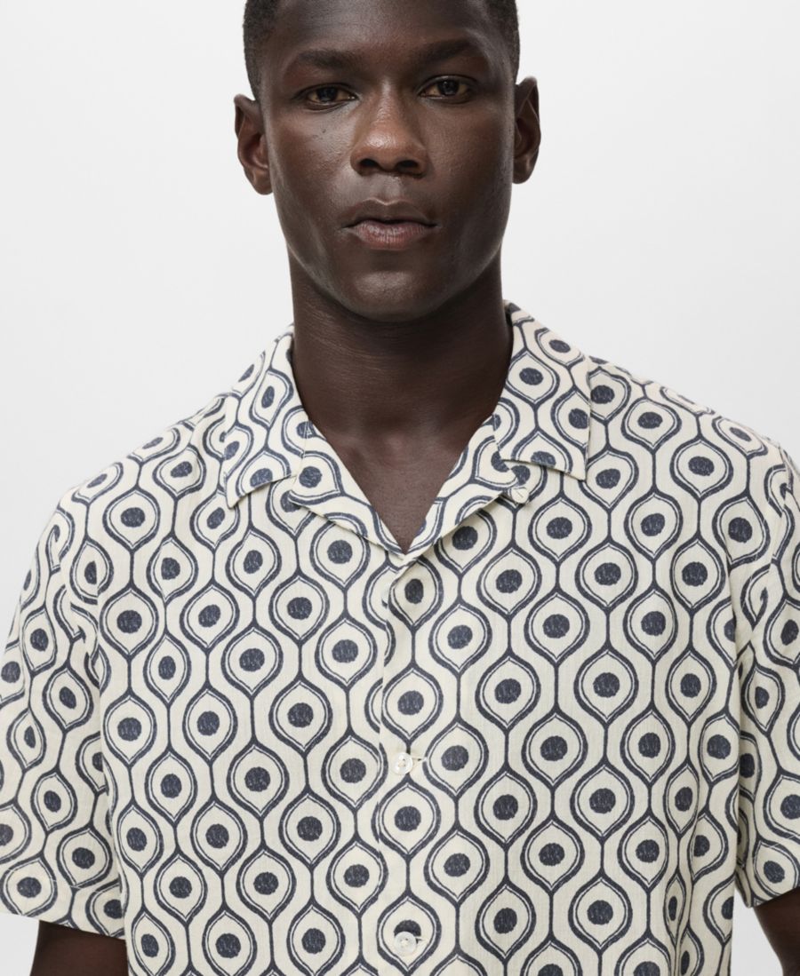 Добавьте непринужденности своему образу с помощью рубашки свободного кроя с принтом от Mango. Эта рубашка свободного кроя из хлопчатобумажной ткани имеет принт, воротник-стойку, короткие рукава, прямой низ и застежку на пуговицы спереди.