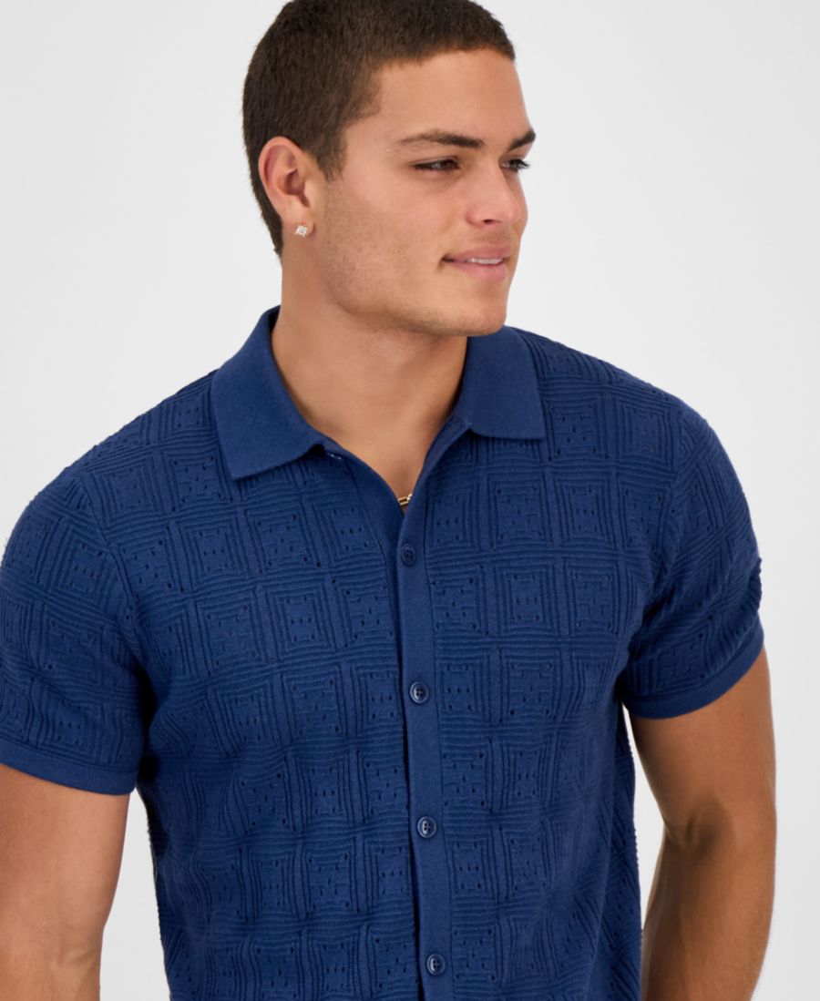 Когда в течение дня хочется чего-то яркого, насыщенного цвета с пленительной текстурой, выберите эту трикотажную рубашку с ажурным узором от GUESS и носите свой образ с уверенностью и удовольствием.