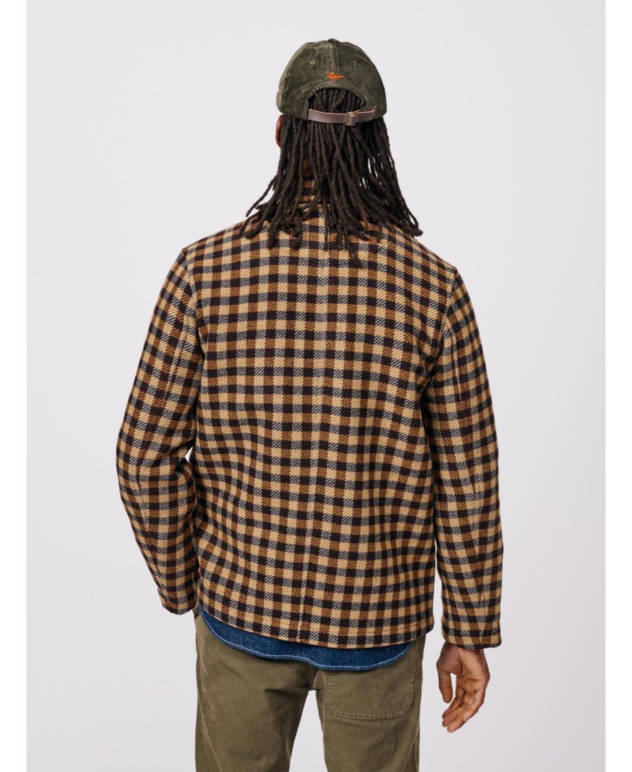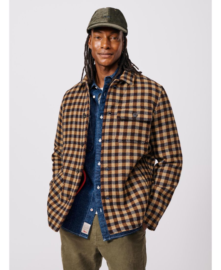 Куртка-рубашка Nettleham Overshirt Jacket, изготовленная из двухсторонней шерстяной ткани, окрашенной пряжей, в клетку земляных оттенков, создана с учетом долговечности и вневременного стиля.