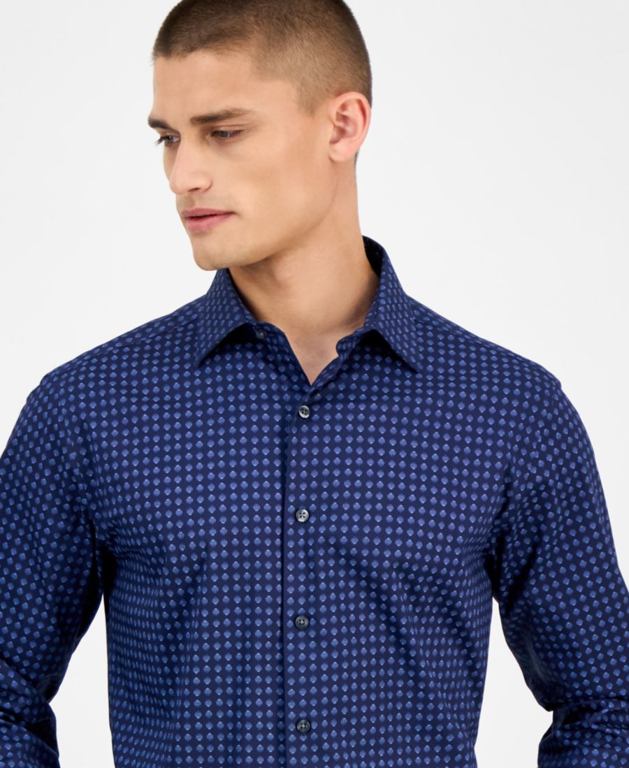 Мужская приталенная рубашка в горошек Alfani, Blue Notte
