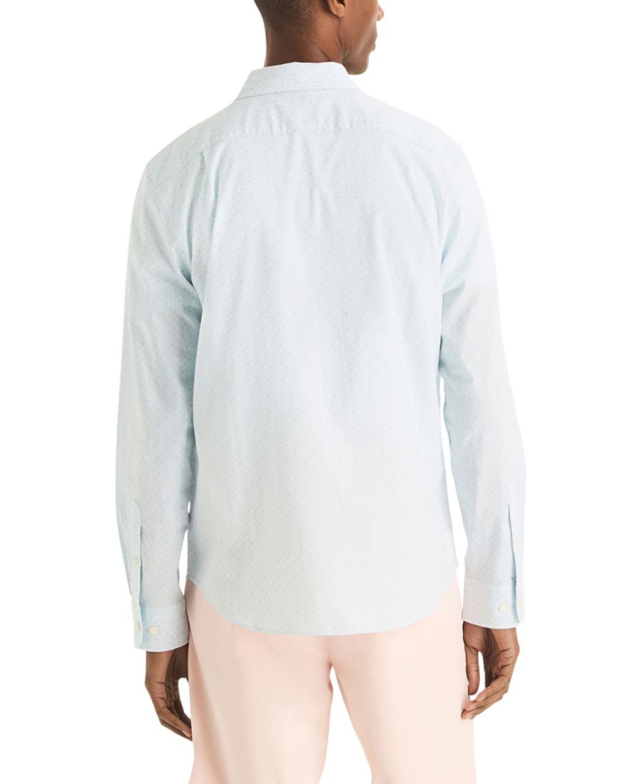 Эта рубашка с принтом имеет прямой воротник и фирменный знак Nautica на накладном кармане.