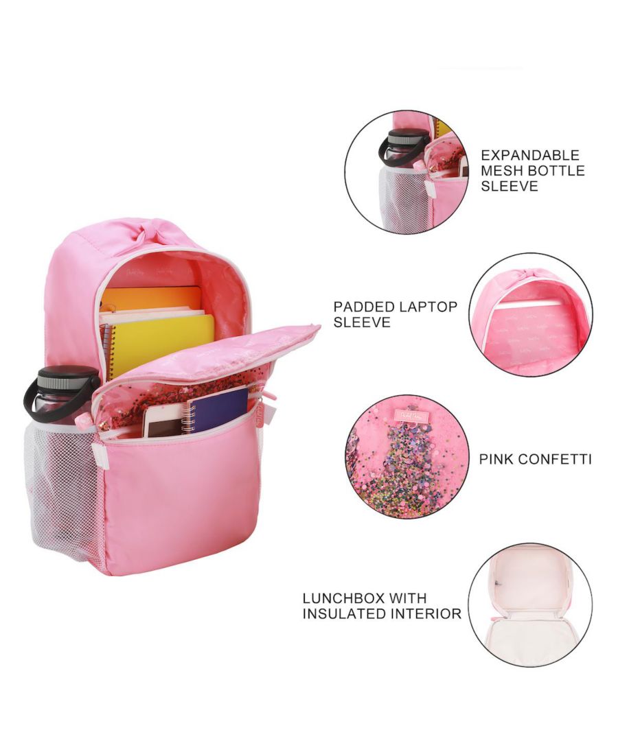 Добавьте немного блеска в свой день с этим розовым рюкзаком Packed Party, украшенным серебряными и черными конфетти. Эта забавная и функциональная сумка включает в себя подходящий термоконтейнер для обеда, мягкий чехол для ноутбука для дополнительной защиты и водоотталкивающее дно для большей прочности. Рюкзак оснащен регулируемыми плечевыми ремнями и изготовлен из полиэстера, что обеспечивает простоту ухода: достаточно точечной чистки, чтобы он всегда был готов к любым приключениям.