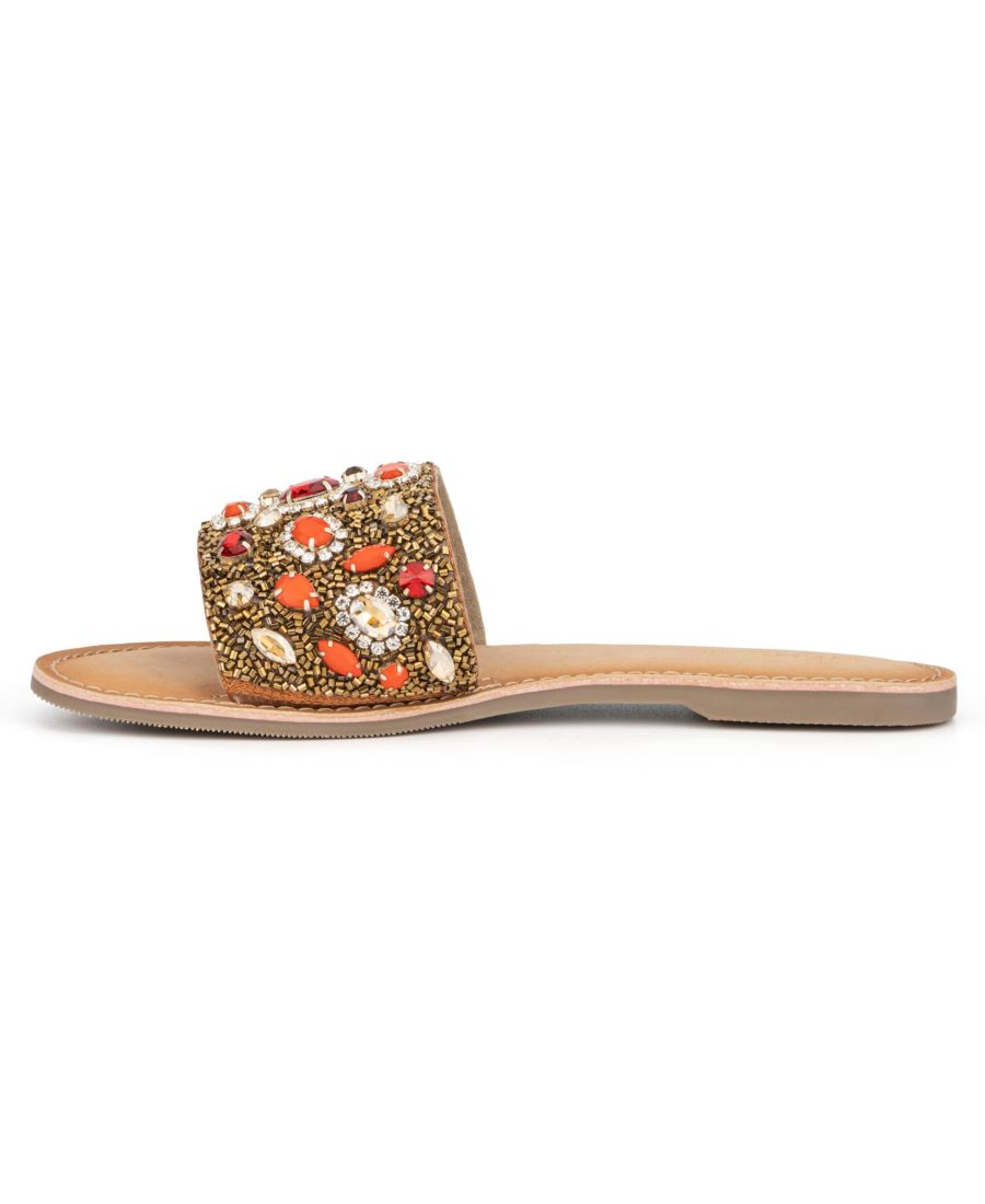 Верхняя часть: 100% бисер и отделка, подошва: 100% термопластичная резина (TPR), подкладка: 100% искусственная кожа. Высота каблука: 0,2 дюйма. Без застежек. Чистка только пятен. Импортные.