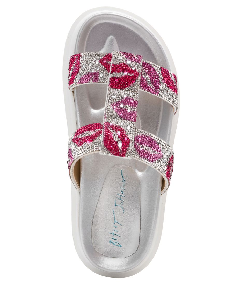 Игривые мотивы красных и розовых губ сверкают на ремешках этих сандалий на платформе Betsey Johnson Billy. Мягкая стелька и конструкция без застежек сочетают в себе игривый стиль и повседневный комфорт.