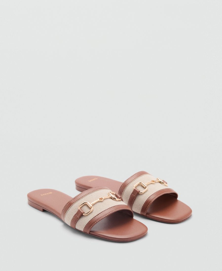 Сбалансированная форма - отличительная черта сандалий с ремешком на пряжке от Mango. Эти сандалии имеют дизайн без ремешка и задника, а также плоскую подошву.