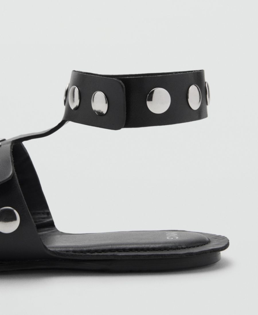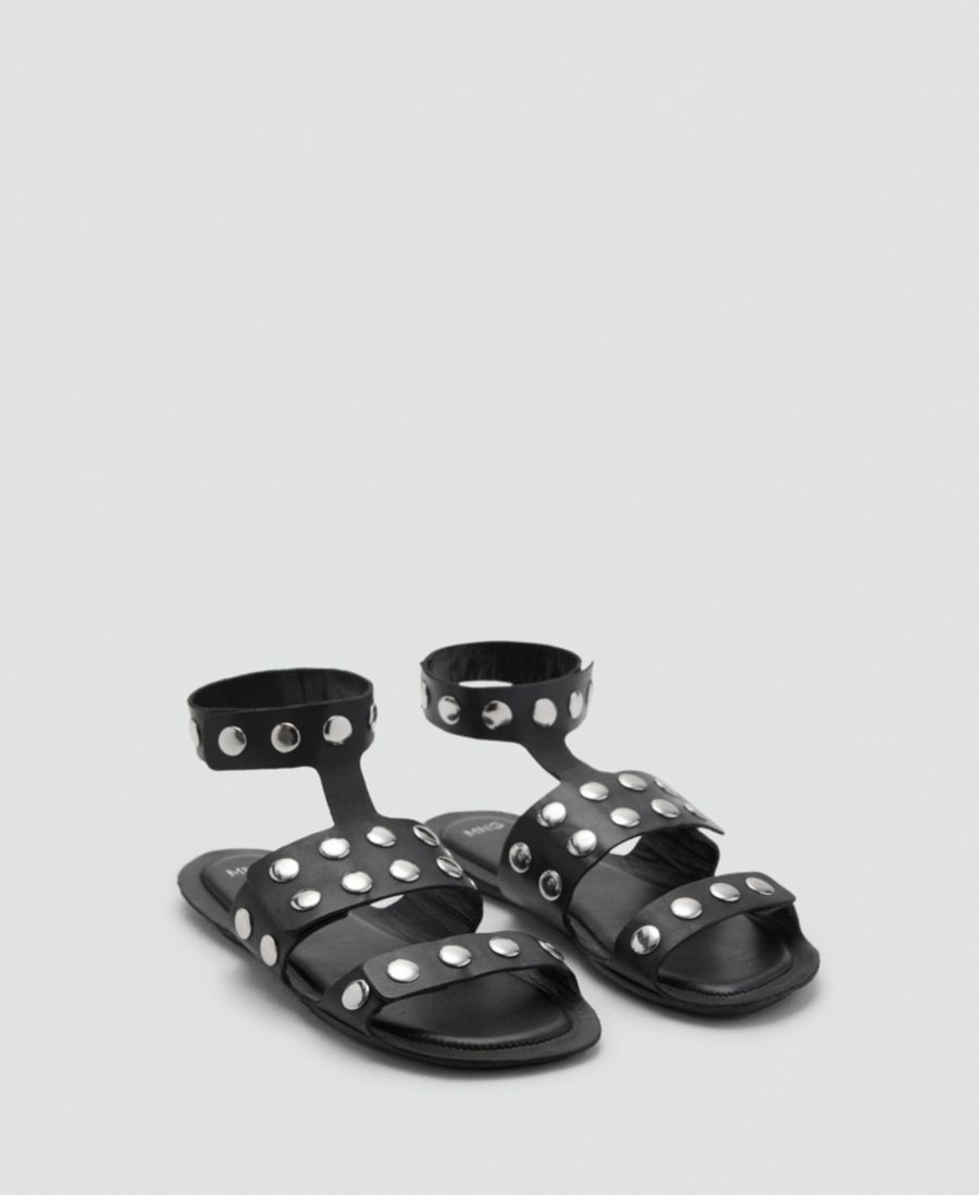 Женские кожаные сандалии с заклепками MANGO, Black
