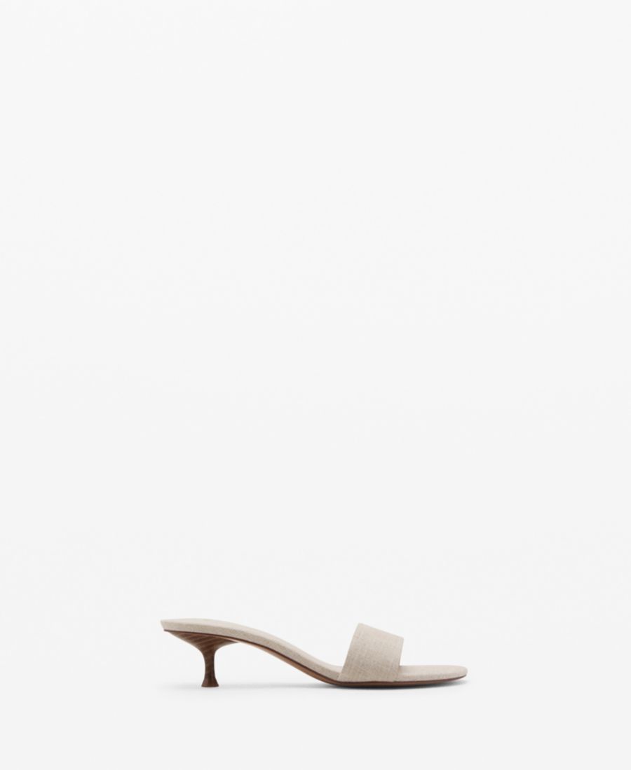 Изящный дизайн отличает сандалии на низком каблуке от Mango. Эти сандалии имеют внутреннюю подкладку и каблук высотой 4 см.