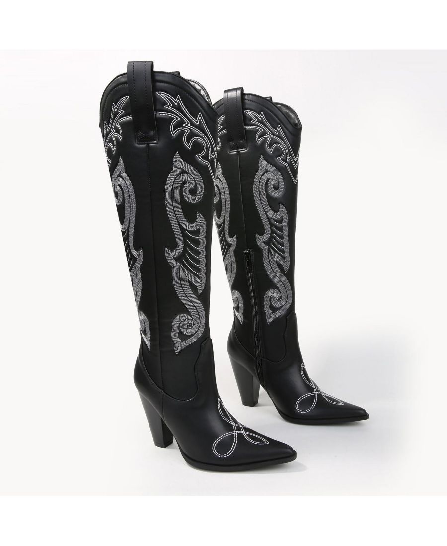 Вышитые ковбойские сапоги до колена Ashley BERNESS, Black