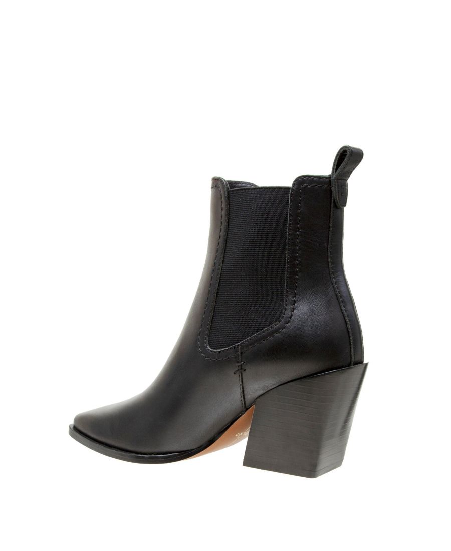 Стильные и непринужденные сапоги в стиле вестерн на высоком каблуке с эластичными вставками.