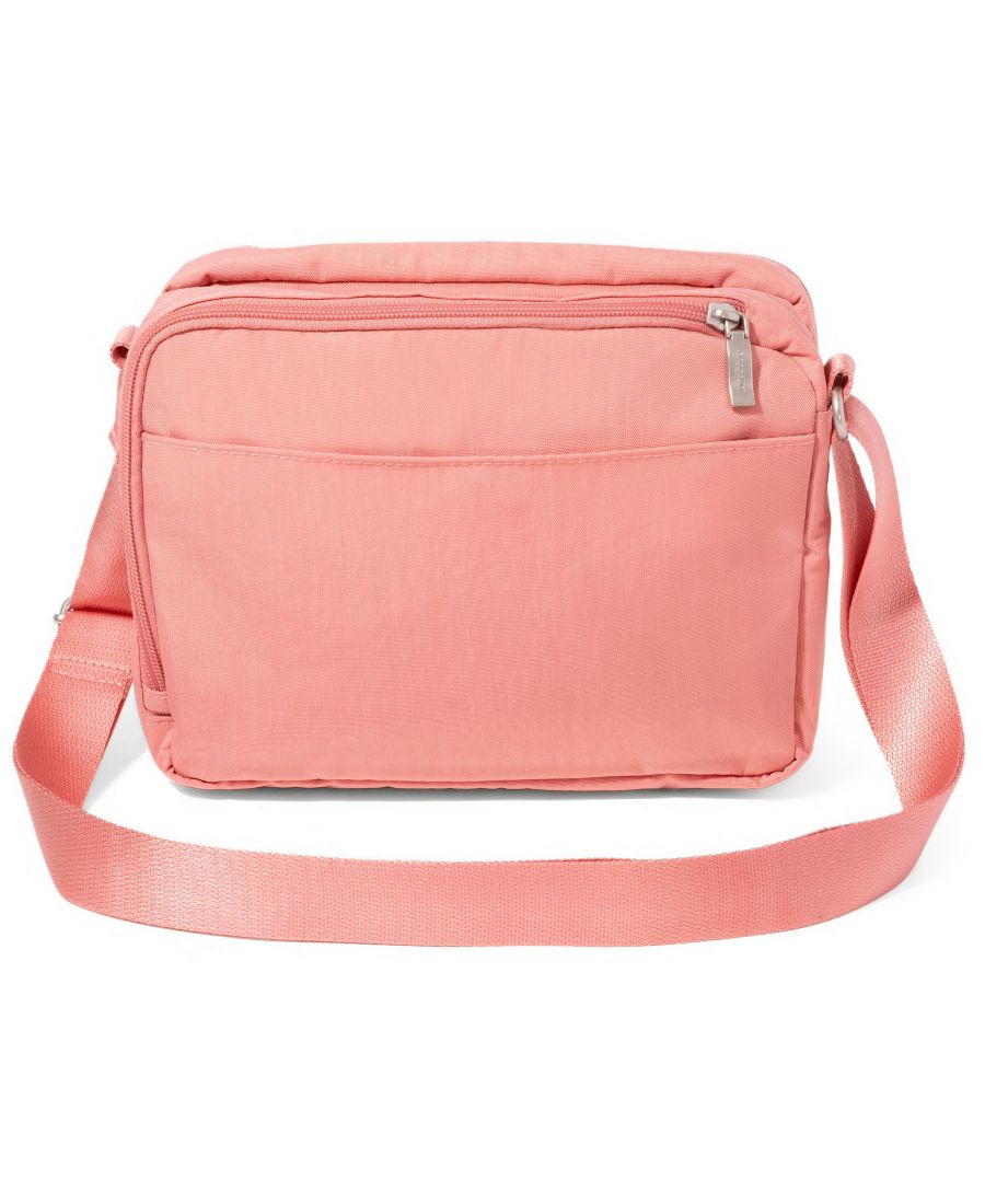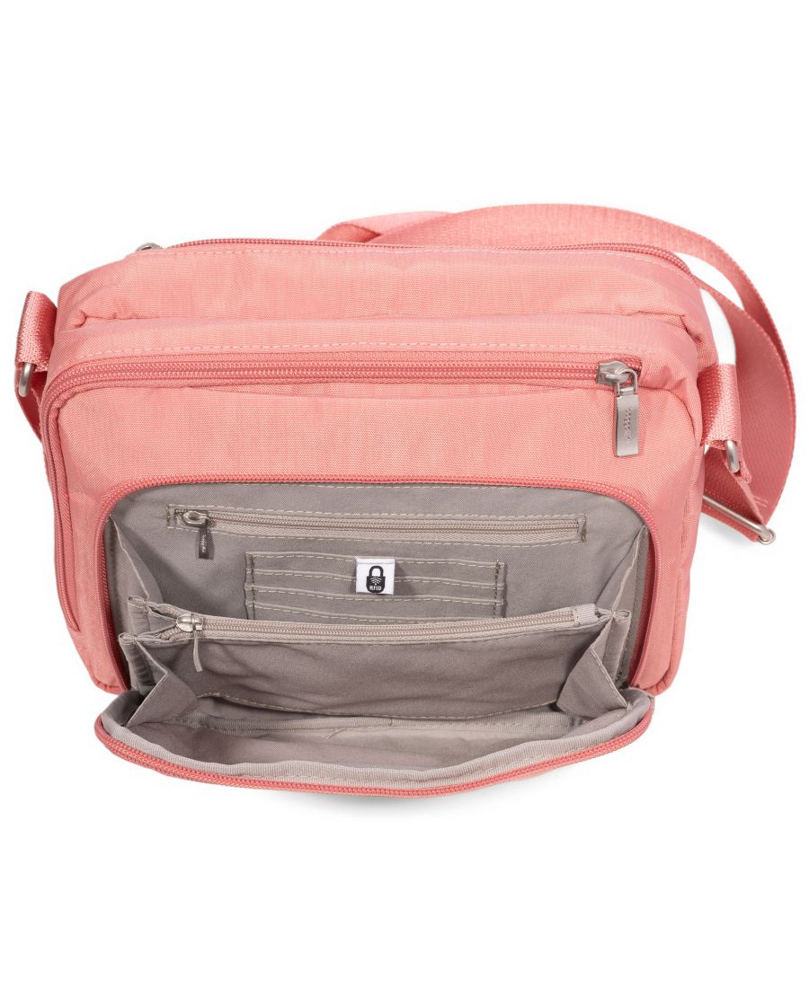 Размеры: 7 дюймов В x 9,25 дюймов Ш x 3,5 дюйма Г; приблизительный вес 1 фунт Застежка-молния Регулируемый удобный плечевой ремень длиной 52 дюйма Карман для телефона Центральное открытое отделение на кнопке Переднее отделение для кошелька включает 4 защищенных RFID слота для кредитных карт Интуитивно понятная организация Карман для личных вещей Петля для помады Два основных отделения на молнии. Этот товар, приобретенный онлайн, необходимо вернуть продавцу только по почте. Этот товар нельзя вернуть в магазины Macy's. Нейлон Протирать влажной тканью Импортный товар