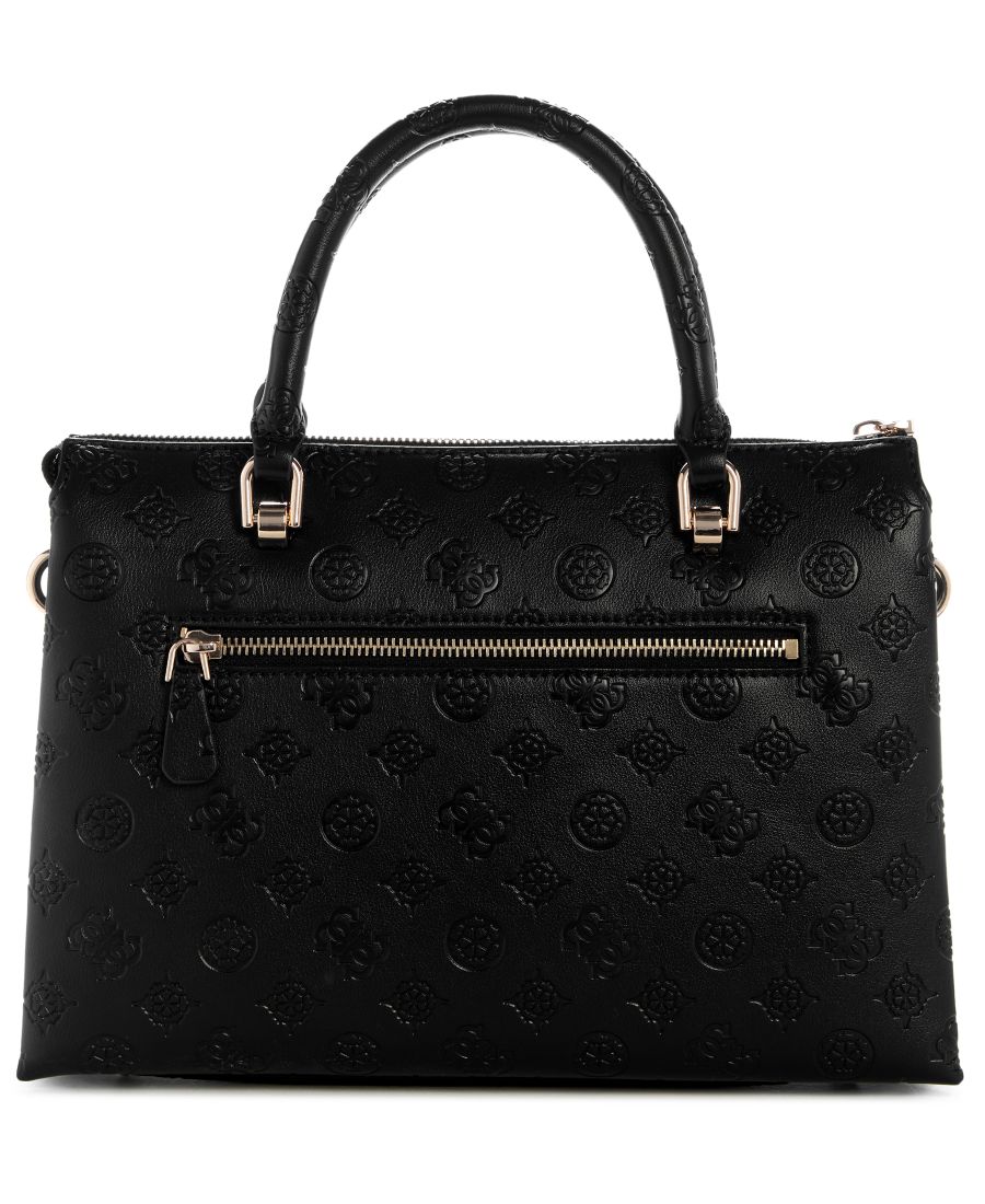 Эта сумка-саквояж GUESS с множеством отделений и съемным брелоком позволит вам максимально эффективно организовать пространство. Конструкция включает в себя как ручку, так и съемный плечевой ремень для универсального ношения. Задний карман на молнии обеспечивает быстрый доступ к часто используемым вещам. Золотистая фурнитура подчеркивает фирменный тисненый рисунок пиона на внешней стороне сумки.