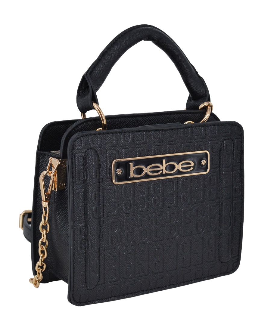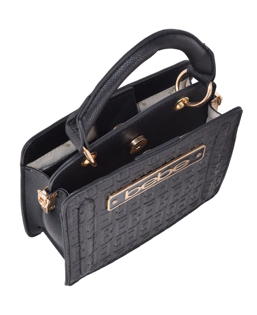 Сумка Thea Mini Satchel выполнена из фирменного материала Bebe с тиснением в виде печатных букв и украшена элегантной эмалированной фурнитурой с логотипом. Сумка имеет верхнюю ручку, а также съемный плечевой ремень и съемный карман для карт, что делает ее еще более универсальной. Стильная и компактная, она идеально подходит как для дневного, так и для вечернего выхода.