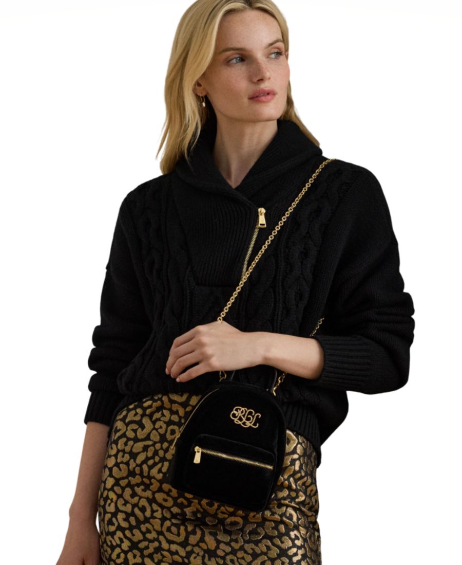 Эта роскошная сумка Stevie от Lauren Ralph Lauren сочетает в себе мягкий бархат и отделку из натуральной кожи. Украшенная фирменным логотипом Lauren на передней части, ее вместительный силуэт, напоминающий рюкзак, предлагает достаточно места для ваших вещей. Съемный ремешок-цепочка добавляет универсальности, позволяя носить ее как через плечо или за верхнюю ручку.