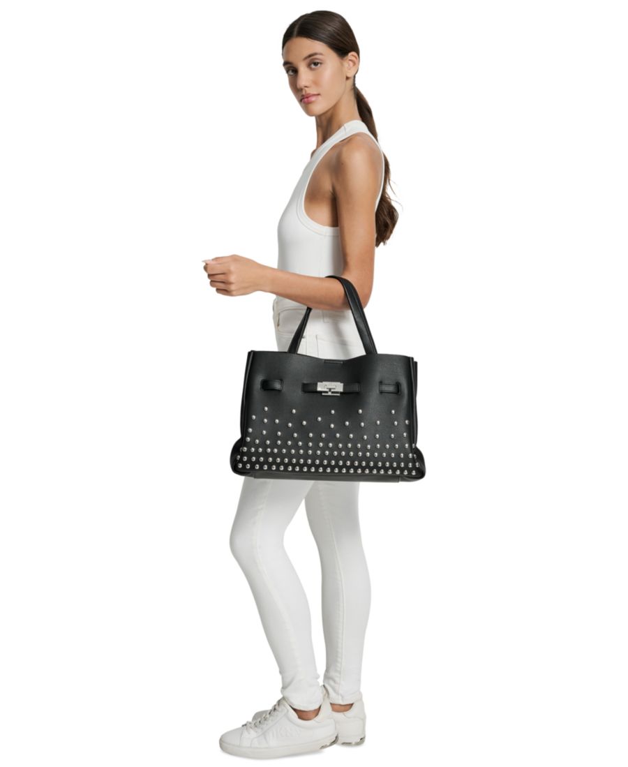 В этой большой сумке-саквояже от DKNY шик сочетается с функциональностью - это смелый и эффектный аксессуар с элегантным силуэтом и застежкой-кнопкой. Вместительная сумка надежно сохранит ваши вещи, обеспечивая при этом легкий доступ к ним в дороге. Независимо от того, направляетесь ли вы в офис или на прогулку в выходные, она добавит изысканности любому образу.