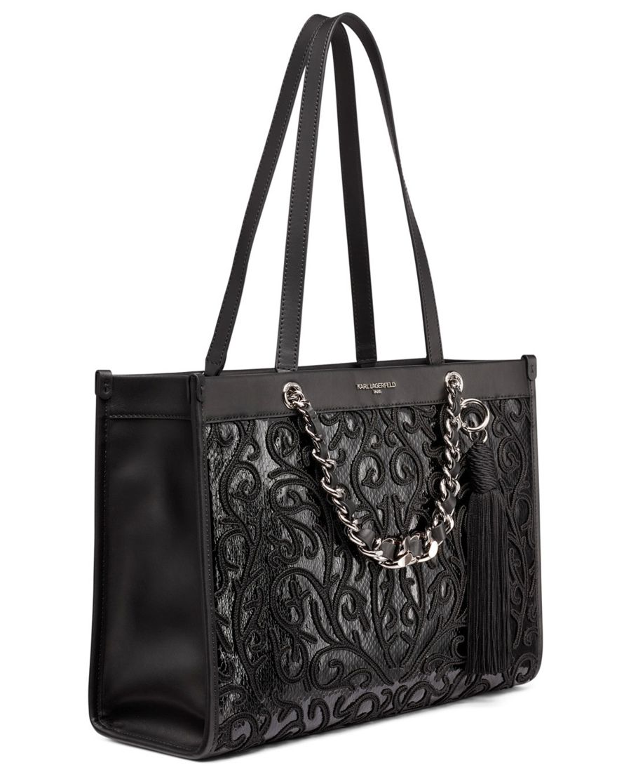В сумке-тоут KARL LAGERFELD PARIS Savoie сочетаются лаконичный стиль и повседневная функциональность. Благодаря магнитной застежке, четырем внутренним накладным карманам, надежному отделению на молнии и специальным слотам для карт, она поможет вам поддерживать порядок в течение дня. Задние карманы обеспечивают легкий доступ к необходимым вещам в нужный момент.